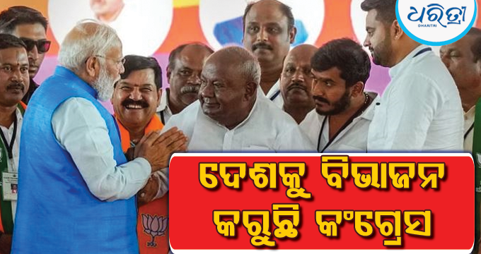 ପ୍ରଧାନମନ୍ତ୍ରୀ ନରେନ୍ଦ୍ର ମୋଦି କଂଗ୍ରେସକୁ ଟାର୍ଗେଟ କରି କହିଛନ୍ତି ଯେ ଆଜି କଂଗ୍ରେସ ଦଳ ଟୁକଡେ ଟୁକଡେ ଗ୍ୟାଙ୍ଗର ସୁଲତାନ ପରି ବୁଲୁଛି। ଦେଶକୁ ବିଭାଜନ, ଭାଙ୍ଗିବା ଏବଂ ଦୁର୍ବଳ କରିବା ପାଇଁ କଂଗ୍ରେସର ବିପଜ୍ଜନକ ଉଦ୍ଦେଶ୍ୟ ଆଜି ମଧ୍ୟ ସମାନ ରହିଛି। ବର୍ତ୍ତମାନ କଂଗ୍ରେସ ଦେଶ ପାଇଁ ଘୃଣାର ସମସ୍ତ ସୀମା ଅତିକ୍ରମ କରିଛି। ସେ କହିଛନ୍ତି ଯେ କର୍ନାଟକର ଲୋକମାନେ ଏହାର ସାକ୍ଷୀ ଅଟନ୍ତି ଯେ ଯିଏ ଭାରତ ବିରୋଧରେ କଥା ହୁଏ, କଂଗ୍ରେସ ତାଙ୍କୁ ପୁରସ୍କାର ସ୍ବରୂପ ନିର୍ବାଚନ ଟିକେଟ ଦେଇଥାଏ।