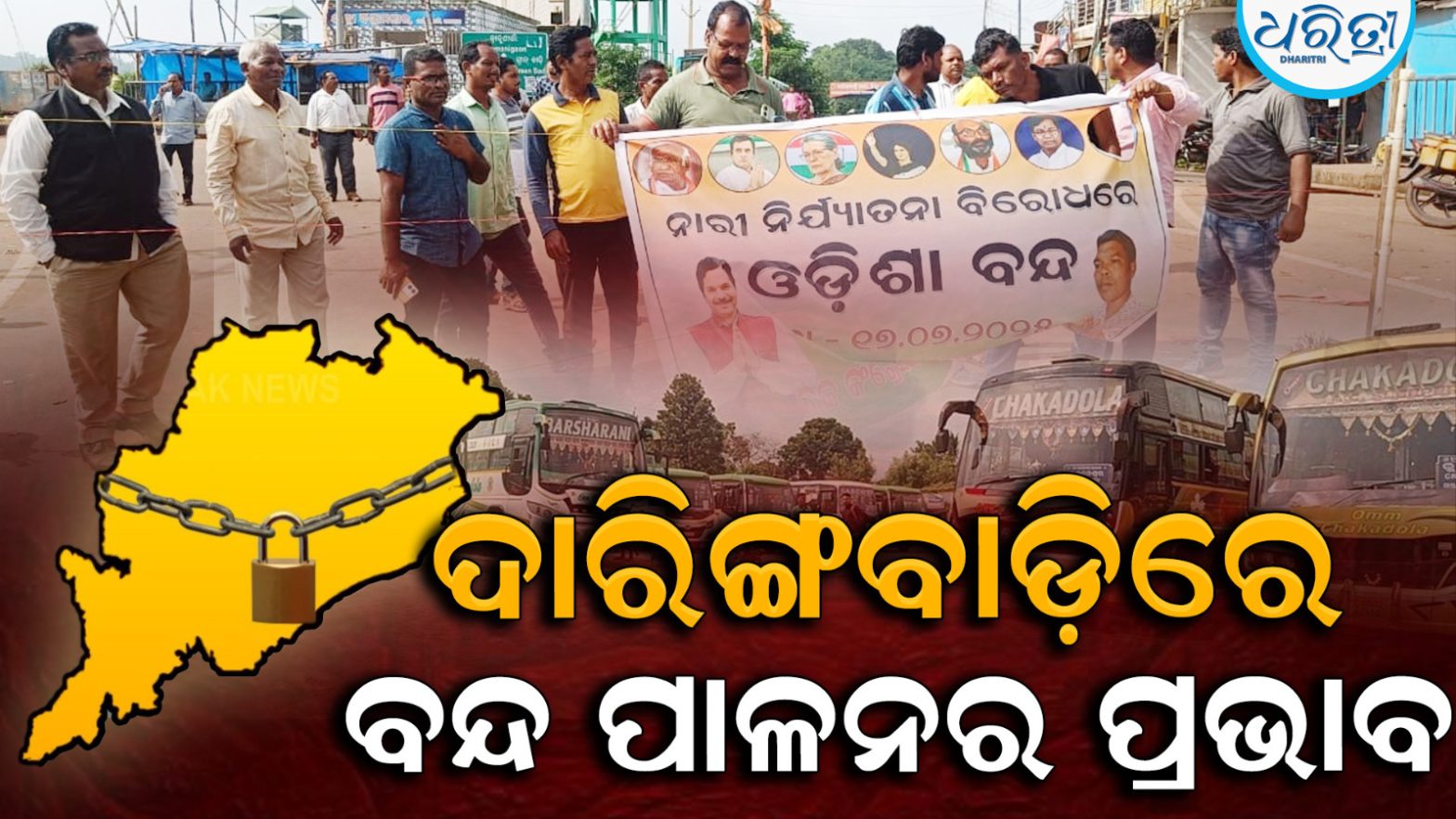 ଦାରିଙ୍ଗବାଡ଼ି,୧୭ା୭(ଅରୁଣ ସାହୁ): ବାଲେଶ୍ୱର ଫକୀର ମୋହନ ସ୍ବୟଂଶାସିତ ମହାବିଦ୍ୟାଳୟରେ ଜଣେ ଛାତ୍ରୀଙ୍କୁ ନ୍ୟାୟ ନମିଳିବା ଓ ସେ ନ୍ୟାୟ ଦାବି କରି ନିରାଶ ହେବା ପରେ ମହାବିଦ୍ୟାଳୟ ପରିସର ମଧ୍ୟରେ ଆତ୍ମାହୁତି ଦେବା ଘଟଣାରେ ସାରା ରାଜ୍ୟକୁ ପ୍ରଦେଶ କଂଗ୍ରେସ କମିଟିର ରାଜ୍ୟ ଶାଖା ପକ୍ଷରୁ ୧୨ ଘଣ୍ଟିଆ ବନ୍ଦ ଡାକରା ଦିଆଯାଇଛି। ଏହାର ପ୍ରଭାବ କନ୍ଧମାଳ ଜିଲା ଦାରିଙ୍ଗବାଡ଼ି ବ୍ଲକ ଅଞ୍ଚଳରେ ଦେଖିବାକୁ ମିକିଛି। ବସ୍‌ ଚଳାଚଳ ବନ୍ଦ ରହିବା ସହ ସରକାରୀ ଓ ବେସରକାରୀ ଅନୁଷ୍ଠାନ ଖୋଲା ରହିଛି। ଦାରିଙ୍ଗବାଡ଼ି କଂଗ୍ରେସ କମିଟି ସମସ୍ତ ସରକାରୀ କାର୍ଯ୍ୟାଳୟ ବୁଲି ବନ୍ଦ କରିବାକୁ ପିକେଟିଂ କରୁଥିବା ଜଣାପଡ଼ିଛି। ଦାରିଙ୍ଗବାଡ଼ିଠାରୁ ବ୍ରହ୍ମପୁର, ଫୁଲବାଣୀ, ଗଜପତି ଆଦି ଅଞ୍ଚଳକୁ ଗାଡ଼ି ଚଳାଚଳ ବନ୍ଦ ରହିବାରୁ ବହୁ ଯାତ୍ରୀ ହନ୍ତସନ୍ତ ହେଉଛନ୍ତି।