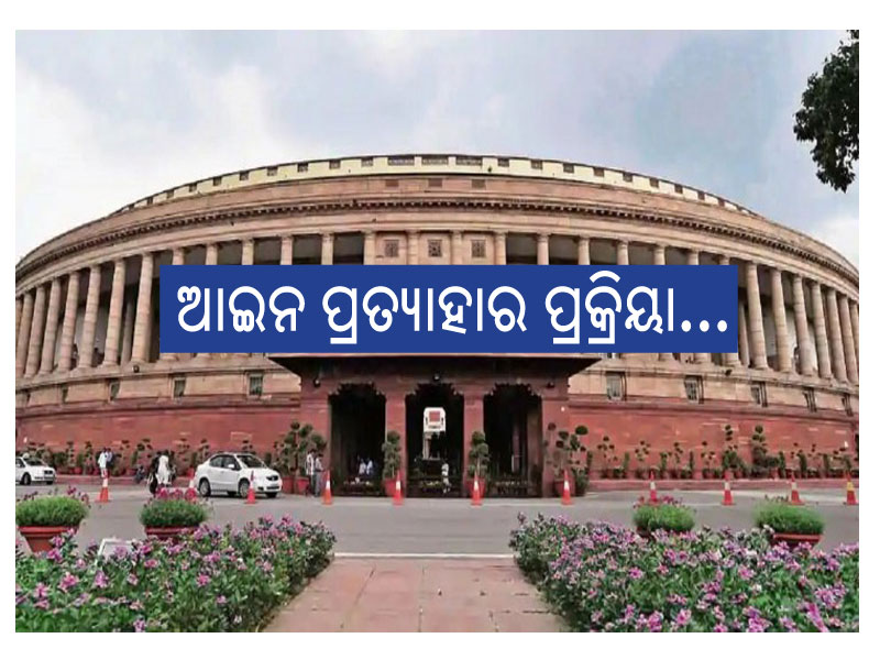 ନୂଆଦିଲ୍ଲୀ,୨୨।୧୧: ପ୍ରଧାନମନ୍ତ୍ରୀ ନରେନ୍ଦ୍ର ମୋଦି ଗତ ଏକ ବର୍ଷ ଧରି ବିବାଦ ଲାଗି ରହିଥିବା ତିନୋଟି କୃଷି ଆଇନକୁ ପ୍ରତ୍ୟାହାର କରି ନେଇଛନ୍ତି। ଆନ୍ଦୋଳନ ଶେଷ କରିବାକୁ ପ୍ରଧାନମନ୍ତ୍ରୀ କୃଷକମାନଙ୍କୁ ଅନୁରୋଧ ମଧ୍ୟ କରିଛନ୍ତି। ତେବେ ସଂସଦରେ ଆଇନ ନ ଫେରିବା ପର୍ଯ୍ୟନ୍ତ ସେମାନଙ୍କ ଆନ୍ଦୋଳନ ଜାରି ରହିବ ବୋଲି କୃଷକ ନେତାମାନେ ଚେତାବନୀ ଦେଇଛନ୍ତି। ଏଭଳି ପରିସ୍ଥିତିରେ ଲୋକଙ୍କ ମନରେ ଏକ ପ୍ରଶ୍ନ ଉଙ୍କି ମାରୁଛି ଯେ ଆଇନ କିପରି ପ୍ରତ୍ୟାହାର କରାଯିବ। ଏଥିପାଇଁ ସମଗ୍ର ସାମ୍ବିଧାନିକ ପ୍ରକ୍ରିୟା ଅନୁସରଣ କରାଯିବ।
