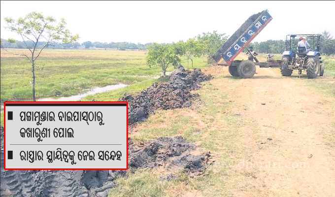 ପଟ୍ଟାମୁଣ୍ଡାଇ,୫ା୬(ସ୍ବ.ପ୍ର୍ର.): ପଟ୍ଟାମୁଣ୍ଡାଇ ଜଳସେଚନ ବିଭାଗ ଅଧୀନରେ ଥିବା ବାଇପାସ୍ଠାରୁ କଖାରୁଣୀ ପୋଲ ପର୍ଯ୍ୟନ୍ତ କେନାଲ ବନ୍ଧର ଦକ୍ଷିଣପାର୍ଶ୍ୱରେ ନୂତନ ବାଇପାସ ରାସ୍ତା ନିର୍ମାଣ କାର୍ଯ୍ୟ ଚାଲିଛି। ଏହି ନିର୍ମାଣ କାର୍ଯ୍ୟ ପଟ୍ଟାମୁଣ୍ଡାଇ ପୂର୍ତ୍ତ ବିଭାଗ ଅଧୀନରେ ହେଉଥିବା ଜଣାପଡ଼ିଛି। ରାସ୍ତା ନିର୍ମାଣ କରୁଥିବା ଠିକାଦାର ସରକାରୀ ନିୟମକୁ ନ ମାନି ମନମୁଖି ଭାବେ ପୋଖରୀରୁ ପଙ୍କମାଟି ପକାଇ କାର୍ଯ୍ୟ କରୁଛନ୍ତି। ନୂତନ ବାଇପାସ ରାସ୍ତା ନିର୍ମାଣ କାମ ନିମ୍ନମାନର କରାଯାଉଥିବାରୁ ରାସ୍ତାର ସ୍ଥାୟିତ୍ୱ ନେଇ ସ୍ଥାନୀୟ ଲୋକେ ଅଭିଯୋଗ କରିଛନ୍ତି।