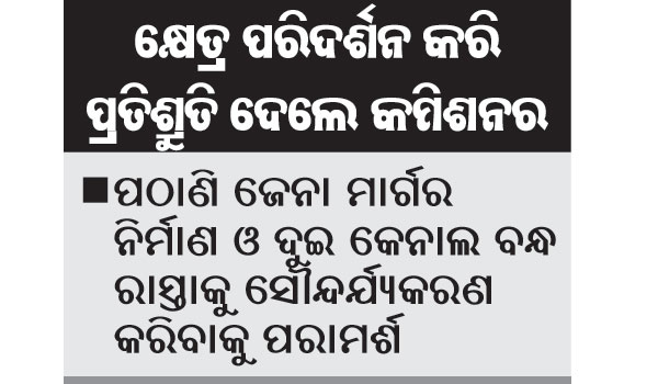 ଭୁବନେଶ୍ୱର,୧୫।୧୦ (ବ୍ୟୁରୋ): ଭୁବନେଶ୍ୱର ମହାନଗର ନିଗମର ୱାର୍ଡ ନଂ.୫ ଅନ୍ତର୍ଗତ ଜାତୀୟ ରାଜପଥ ୧୬ର ରିଲାଏନ୍ସ ଫ୍ରେସ୍ ନିକଟ ସତ୍ୟବିହାରରୁ ବାହାରି ମଞ୍ଚେଶ୍ୱର ଗାଁ ପର୍ଯ୍ୟନ୍ତ ଲମ୍ବିଥିବା କେନାଲ ରାସ୍ତା ବିପଦପୂର୍ଣ୍ଣ ଅବସ୍ଥାରେ ରହିଛି। ଏହାର ସମାଧାନ ପାଇଁ ସାମ୍ବାଦିକ ତଥା ସ୍ଥାନୀୟ ବାସିନ୍ଦା ସ୍ବରୂପ ଦାସଙ୍କ ନେତୃତ୍ୱରେ ଏକ ଟିମ୍ ବିଏମ୍ସି କମିଶନର ବିଜୟ ଅମୃତ କୁଲାଙ୍ଗେଙ୍କ ଦୃଷ୍ଟି ଆକର୍ଷଣ କରିଥିଲେ। ସ୍ଥାନୀୟ ବାସିନ୍ଦାଙ୍କ ଅନୁରୋଧକ୍ରମେ କମିଶନର ଶୁକ୍ରବାର ସକାଳେ ସେଠାରେ ପହଞ୍ଚତ୍ ଚାଲି ଚାଲି ରାସ୍ତାର ଅବସ୍ଥା ପରଖିଥିଲେ। ଏଥିସହିତ ସ୍ଥାନୀୟ ଲୋକଙ୍କ ସମସ୍ୟା ଅନୁଭବ କରିବା ସହ ସାମ୍ବାଦିକ ସ୍ବରୂପଙ୍କ ସମେତ ଅନୁପ କୁମାର ଖୁଣ୍ଟିଆ, ପ୍ରଶାନ୍ତ ବେହେରା ପ୍ରମୁଖ ସ୍ଥାନୀୟ ବାସିନ୍ଦାଙ୍କ ସହିତ ଆଲୋଚନା କରିବା ସହିତ ଶୀଘ୍ର ରାସ୍ତାର ନିର୍ମାଣ କାର୍ଯ୍ୟ ଆରମ୍ଭ ହେବ ବୋଲି ପ୍ରତିଶ୍ରୁତି ଦେଇଥିଲେ। ସେହିପରି ଲୋକେ କେନାଲକୁ ଛାଡୁଥିବା ମଇଳା ପାଣି ବନ୍ଦ କରିବା ସହିତ ପଠାଣି ଜେନା ମାର୍ଗର ନିର୍ମାଣ ଓ ଦୁଇ କେନାଲ ବନ୍ଧ ରାସ୍ତାକୁ ସୌନ୍ଦର୍ଯ୍ୟକରଣ କରିବା ପାଇଁ ପରାମର୍ଶ ଦେଇଥିଲେ।