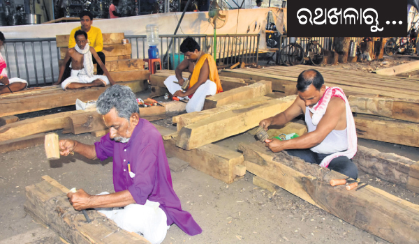 ତାଳଧ୍ୱଜ ରଥର ୨ଟି ଗରଗରାର ନିର୍ମାଣ ରବିବାରଠାରୁ ଶେଷ ହୋଇଥିଲେହେଁ, ଦୋୟ ଗରଗରାରେ ଉଭୟ ପାଶର୍ବ ବିନ୍ଧ କାର୍ଯ୍ୟ ବାକି ରହିଛି। ତାଳଧ୍ୱଜ ରଥର ୩ଟି ଚାରି ନାହାକର ନିର୍ମାଣ ସାରି ଚତୁର୍ଥ ଚାରି ନାହାକାର ଚଉପଟ କାର୍ଯ୍ୟ ଶେଷ ହୋଇଛି। ତାର ଆଠ କୋଣି କାର୍ଯ୍ୟ ବାକି ରହିଛି। ତାଳଧ୍ୱଜ ରଥର ୧୧ଟି ଚଉଦ ନାହାକା ନିର୍ମାଣ କାର୍ଯ୍ୟ ଶେଷ ହୋଇ ବାକି ୩ଟି ଚଉଦ ନାହାକାର ନିର୍ମାଣ କାର୍ଯ୍ୟ ଜାରି ରହିଛି। ତାଳଧ୍ୱଜ ରଥର ୩ଟି ଦଣ୍ଡାର ନିର୍ମାଣ ଶେଷ ହୋଇ ଆଉ ଦୁଇଟି ଦଣ୍ଡାର ନିର୍ମାଣ ଶେଷ ପର୍ଯ୍ୟାୟରେ ପହଞ୍ଚିଛି। ଏଥିସହ ତାଳଧ୍ୱଜ ରଥର ୨ଟି ପାଶର୍ବ ଦଣ୍ଡାରୁ ଗୋଟିକର ଚଉପଟ କାର୍ଯ୍ୟ ଆରମ୍ଭ ହୋଇଛି। ଦର୍ପଦଳନ ରଥର ଦୁଇଟି ଗରଗରାର ନିର୍ମାଣ କାର୍ଯ୍ୟ ଶେଷ ହୋଇ ଦୁଇଟି ଗରଗରାର ଉଭୟ ପାଶର୍ବରେ ବିନ୍ଧ କାର୍ଯ୍ୟ ସରିଛି। ଦର୍ପଦଳନ ରଥର ୩ଟି ଗୋରା, ଚାରି ନାହାକା ନିର୍ମାଣ ଶେଷ ହୋଇ ଚତୁର୍ଥ ଚାରି ନାହାକାଟିର ଚଉପଟ କାର୍ଯ୍ୟ ଶେଷ ହୋଇ ତାର ଆଠ କୋଣି କାମ ବାକି ରହିଛି। ଦର୍ପଦଳନ ରଥର ୧୨ଟି ଚଉଦ ନାହାକାର ନିର୍ମାଣ ଶେଷ ହୋଇଛି। ଆଉ ଦୁଇଟିର ନିର୍ମାଣ ଶେଷ ପର୍ଯ୍ୟାୟରେ ପହଞ୍ଚିଛି। ଦର୍ପଦଳନ ରଥର ୩ଟି ପାଞ୍ଚ ଦଣ୍ଡା ନିର୍ମାଣ ଶେଷ ହୋଇଥିବା ବେଳେ ଆଉ ଦୁଇଟିର ଚଉପଟ କାର୍ଯ୍ୟ ଜାରି ରହିଥିବା ସହ ଦୁଇଟି ପାଶର୍ବ ଦଣ୍ଡାର ଚଉପଟ କାର୍ଯ୍ୟ ଆରମ୍ଭ ହୋଇଛି। ନନ୍ଦିଘୋଷ ରଥର ଦୁଇଟି ଗରଗରାର ନିର୍ମାଣ କାର୍ଯ୍ୟ ପ୍ରଥମେ ଶେଷ ହୋଇ ଉଭୟ ପାଶର୍ବରେ ବିନ୍ଧ କାର୍ଯ୍ୟ ମଧ୍ୟ ଶେଷ ହୋଇଛି। ନନ୍ଦିଘୋଷ ରଥର ଦୁଇଟି ଚାରି ନାହାକ ନିର୍ମାଣ ଶେଷ ହୋଇ, ସୋମବାର ଆଉଗୋଟିଏ ଚାରି ନାହାକାର ନିର୍ମାଣ ଶେଷ ହୋଇ ଶେଷ ଚାରି ନାହାକାର ଚଉପଟ କାର୍ଯ୍ୟ ସରିଛି, ଆଠ କୋଣି ଅଂଶ କାର୍ଯ୍ୟ ବାକି ରହିଛି। ନନ୍ଦିଘୋଷ ରଥର ପ୍ରଥମ ପର୍ଯ୍ୟାୟରେ ୮ଟି ଚଉଦ ନାହାକା ଶେଷ ହୋଇ ବାକି ୬ଟିର ନିର୍ମାଣ କାର୍ଯ୍ୟ ଜାରି ରହି ନିର୍ମାଣ କାର୍ଯ୍ୟ ଶେଷ ସୁଦ୍ଧା ସମସ୍ତ ଚଉଦ ନାହାକାର ନିର୍ମାଣ ଶେଷ ହୋଇଛି। ନନ୍ଦିଘୋଷ ରଥର ୪ଟି ଦଣ୍ଡାର ନିର୍ମାଣ କାର୍ଯ୍ୟ ଶେଷ ହୋଇ ପଞ୍ଚମ ଦଣ୍ଡାର ଚଉପଟ କାର୍ଯ୍ୟ ଜାରି ରହିଥିବା ସହ ଗୋଟିଏ ପାଶର୍ବ ଦଣ୍ଡାର ଚଉପଟ ପାଇଁ ଚିତା କାର୍ଯ୍ୟ ଆରମ୍ଭ ହୋଇଛି। ତିନିରଥର ରୂପକାର ସେବକମାନେ ତିନି ରଥର କୋଣ ଗୁଜ ବା ସାଲ ଗୁଜ ଏବଂ ତିଖ ଗୁଜ ଗୁଡିକରେ ରୂପ ଖୋଦେଇ ସହ ଅଳଙ୍କାର ତଥା ପଲିସ କାର୍ଯ୍ୟ ଶେଷ ପର୍ଯ୍ୟାୟରେ ପହଞ୍ଚିଛି। ତିନି ରଥର ଶେଷ ଦୁଇଟି ଲେଖାଏ ତିଖ ଗୁଜରେ ରୂପ ଖୋଦେଇ କାର୍ଯ୍ୟ ଜାରି ରହିଛି। ଦୋଳବେଦିରେ ନନ୍ଦିଘୋଷ ରଥର ପୋଲ ଗୟଳ ଚିରଟ କାର୍ଯ୍ୟ କରତି ସେବକମାନେ ଶେଷ କରିଛନ୍ତି। ସେହିପରି ତିନିରଥର ଓଝା ସେବକମାନେ ତିନିରଥ ପାଇଁ ଆବଶ୍ୟକ ଦଣ୍ଡା ବିଡ଼ିଆ, ଅଗ ପାତେଳିରୁ ମୋଟ ୨୩୧ଟି କଣ୍ଟା ନିର୍ମାଣ ଶେଷ କରି ତିନି ରଥର ଯୋଖା କଣ୍ଟା ନିର୍ମାଣ ଆରମ୍ଭ କରିଛନ୍ତି।