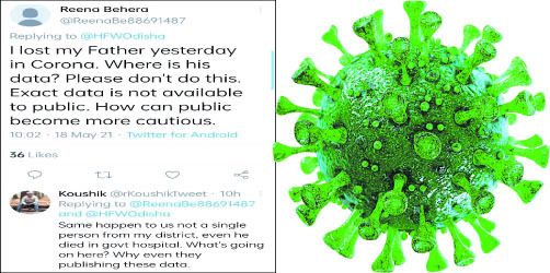 ଭୁବନେଶ୍ୱର,୧୯ା୫(ବ୍ୟୁରୋ):କରୋନାର ଦ୍ୱିତୀୟ ଲହର ମାରାତ୍ମକ ସାବ୍ୟସ୍ତ ହୋଇଛି। ଦେଶରେ ଗତ କିଛିଦିନ ହେଲା କରୋନା ଆକ୍ରାନ୍ତଙ୍କ ମୃତ୍ୟୁସଂଖ୍ୟା ସରକାରୀ ତଥ୍ୟ ଅନୁସାରେ ହାରାହାରି ପ୍ରାୟ ୪୦୦୦ ରହୁଛି। ଓଡ଼ିଶାରେ ମଧ୍ୟ ମୃତ୍ୟୁସଂଖ୍ୟା ଚିନ୍ତାଜନକ ଥିବାବେଳେ ତଥ୍ୟକୁ ନେଇ ବିବାଦ ସୃଷ୍ଟି ହେଉଛି। ଅନେକେ ସରକାରୀ ତଥ୍ୟକୁ ବିଶ୍ୱାସ ନ କରି ତଥ୍ୟ ଲୁଚାଉଥିବା ଅଭିଯୋଗ ଆଣିଛନ୍ତି। ରାଜ୍ୟରେ କେତେଜଣଙ୍କ କରୋନାରେ ମୃତ୍ୟୁ ଘଟିଛି ତାହା ରାଜ୍ୟବାସୀ ଜାଣିବା ପାଇଁ ପ୍ରତିଦିନ ସ୍ବାସ୍ଥ୍ୟ ବିଭାଗର ଟୁଇଟର ଆକାଉଣ୍ଟରେ ତଥ୍ୟ ପ୍ରକାଶ ପାଉଛି, ଯେଉଁଥିରେ ମୃତକଙ୍କ ବୟସ, ଲିଙ୍ଗ ଓ ସେ କେଉଁ ଜିଲାର ଉଲ୍ଲେଖ ରହୁଛି। ହେଲେ ରାଜ୍ୟ ସରକାରଙ୍କ ଉକ୍ତ ସୋସିଆଲ ମିଡିଆ ଆକାଉଣ୍ଟରେ ମୃତକଙ୍କ ପରିବାର ସଦସ୍ୟମାନେ ସିଧାସଳଖ ପ୍ରମାଣ ସହିତ ପ୍ରଶ୍ନ କରୁଛନ୍ତି ଯେ, ସେମାନଙ୍କ ପରିବାର ସଦସ୍ୟଙ୍କ ମୃତ୍ୟୁ ତଥ୍ୟ କାହିଁକି ଦିଆଯାଇନାହିଁ। ରାଜ୍ୟର ପ୍ରତ୍ୟେକ ସହରର ପ୍ରତି ଗଳିରୁ ପ୍ରଶ୍ନ ଉଠୁଛି ଯେ ଏଭଳି ସାଂଘାତିକ ଖେଳ କାହିଁକି। ଆମ ପରିବାର ସଦସ୍ୟଙ୍କ ମୃତ୍ୟୁ ବିଷୟ କାହିଁକି ସରକାରୀ ତଥ୍ୟରେ ଉଲ୍ଲେଖ ହେଉନାହିଁ ବୋଲି ସେମାନେ ପ୍ରଶ୍ନ କରୁଛନ୍ତି। ଭାତହାଣ୍ଡିରୁ ଗୋଟିଏ ଚିପିବା ଭଳି ଧରିତ୍ରୀର ଖୋର୍ଦ୍ଧା ଜିଲା ପ୍ରତିନିଧି ପ୍ରଭାତ ପାଣିଗ୍ରାହୀଙ୍କ ସାନଭାଇ ଅବନୀକାନ୍ତ ପାଣିଗ୍ରାହୀଙ୍କ ଗତ ୧୫ ତାରିଖରେ ବ୍ରହ୍ମପୁର ଏମ୍କେସିଜି ମେଡିକାଲର ଡେଡିକେଟେଡ୍ କୋଭିଡ୍ ହସ୍ପିଟାଲରେ ମୃତ୍ୟୁ ଘଟିଥିଲା। କିନ୍ତୁ ଏହି ମୃତ୍ୟୁ ବିଷୟ ଆଜି ଯାଏ ସ୍ବାସ୍ଥ୍ୟ ବିଭାଗର ଟୁଇଟର ତଥ୍ୟରେ ଉଲ୍ଲେଖ କରାଗଲାନାହିଁ। ଏହି ଘଟଣାରୁ ସ୍ପଷ୍ଟ ହେଉଛି ଯେ, ସାଧାରଣ ଲୋକଙ୍କ ମନରେ ସୃଷ୍ଟି ହେଉଥିବା ଅବିଶ୍ୱାସ କେତେ ଯଥାର୍ଥ।