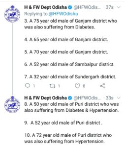 ମୃତକମାନଙ୍କ ମଧ୍ୟରେ ଗଞ୍ଜାମରୁ ୪ ଜଣ, ପୁରୀରୁ ୩, କଟକ, ସମ୍ବଲପୁର ଏବଂ ସୁନ୍ଦରଗଡ଼ରୁ ଜଣେ ଲେଖାଏ ଅଛନ୍ତି।