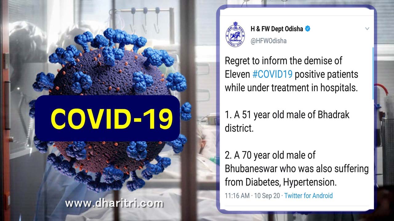 ଆଜି ଖୋର୍ଦ୍ଧା, କଟକ ଓ ପୁରୀ ଜିଲାରୁ ୨ ଜଣ ଲେଖାଏ କରୋନା ଆକ୍ରାନ୍ତଙ୍କ ମୃତ୍ୟୁ ଘଟିଥିବା ବେଳେ ଗଞ୍ଜାମ, କୋରାପୁଟ, ରାୟଗଡ଼ା, ଭଦ୍ରକ ଏବଂ ନୟାଗଡ଼ରୁ ଜଣେ ଲେଖାଏ ଆକ୍ରାନ୍ତଙ୍କ ମୃତ୍ୟୁ ଘଟିଛି।
