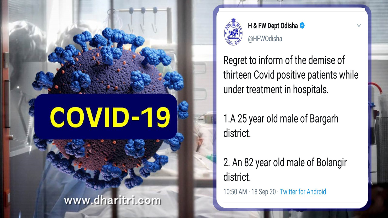 ଭୁବନେଶ୍ୱର,୧୮ା୯(ବ୍ୟୁରୋ): ଶୁକ୍ରବାର ରାଜ୍ୟରୁ ଆଉ ୧୩ ଜୀବନ ନେଇଛି କରୋନା। ଏହାକୁ ମିଶାଇ ରାଜ୍ୟରେ କରୋନା ଜନିତ ମୃତ୍ୟୁସଂଖ୍ୟା ୬୮୨କୁ ବୃଦ୍ଧି ପାଇଥିବା ରାଜ୍ୟ ସ୍ବାସ୍ଥ୍ୟ ଓ ପରିବାର କଲ୍ୟାଣ ବିଭାଗ ପକ୍ଷରୁ ସୂଚନା ଦିଆଯାଇଛି।