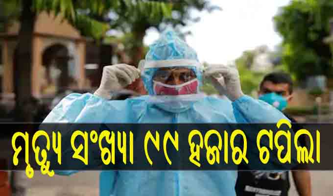 ନୂଆଦିଲ୍ଲୀ,୨।୧୦: ଦେଶରେ ଲଗାତାର କରୋନା ସଂକ୍ରମଣ ବଢିଚାଲିଛି। ଶୁକ୍ରବାର ପୁଣିଥରେ ଦେଶରେ ସଂକ୍ରମଣ ମାମଲା ପ୍ରାୟ ୮୧ ହଜାରରୁ ଅଧିକ ରହିଛି। ଗତ ୨୪ ଘଣ୍ଟା ମଧ୍ୟରେ ୮୧ ହଜାର ୪୮୪ ନୂଆ ସଂକ୍ରମଣ ମାମଲା ଚିହ୍ନଟ ହୋଇଛି ଏବଂ ୧୦୯୫ ଜଣଙ୍କ ମୃତ୍ୟୁ ହୋଇଛି। ଫଳରେ ଦେଶରେ ମୋଟ ସଂକ୍ରମଣ ସଂଖ୍ୟା ୬୩ ଲକ୍ଷ ୯୪ ହଜାର ୬୯ରେ ପହଞ୍ଚିଛି ଏବଂ ମୃତ୍ୟୁସଂଖ୍ୟା ୯୯ ହଜାର ୭୭୩କୁ ବୃଦ୍ଧି ପାଇଛି। ମୋଟ ସଂକ୍ରମିତଙ୍କ ମଧ୍ୟରୁ ୫୩ ଲକ୍ଷ ୫୨ହଜାର ୭୮ ଜଣ କରୋନାରୁ ସୁସ୍ଥ ହୋଇ ସାରିଛନ୍ତି। ଏବେ ଦେଶରେ ୯ ଲକ୍ଷ ୪୨ ହଜାର ୨୧୭ ସକ୍ରିୟ ମାମଲା ରହିଛି ବୋଲି କେନ୍ଦ୍ର ସ୍ବାସ୍ଥ୍ୟ ମନ୍ତ୍ରଣାାଳୟ ପକ୍ଷରୁ କୁହାଯାଇଛି।