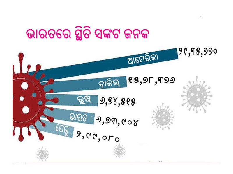 ନୂଆଦିଲ୍ଲୀ, ୫।୭: ଦେଶରେ କରୋନା ମହାମାରୀ ସଂକ୍ରମଣ ବଢ଼ିଚାଲିଛି। ଇତିମଧ୍ୟରେ କରୋନା ଆକ୍ରାନ୍ତଙ୍କ ସଂଖ୍ୟା ୬ ଲକ୍ଷ ୭୩ ହଜାର ୯୪୭ରେ ପହଞ୍ଚିଛି। ଏବେ ଭାରତ ରୁଷ୍ ପାଖାପାଖି ପହଞ୍ଚି ଯାଇଛି। ରୁଷ୍ରେ କରୋନା ଆକ୍ରାନ୍ତଙ୍କ ସଂଖ୍ୟା ୬ ଲକ୍ଷ ୭୪ ହଜାର ୫୧୫ ରହିଛି। ଆକ୍ରାନ୍ତଙ୍କ ସଂଖ୍ୟାରେ ଭାରତ ରୁଷ୍ଠାରୁ ମାତ୍ର ୬୧୧ ପଛରେ ରହିଛି। ଭାରତରେ ଗତ ୨୪ ଘଣ୍ଟା ମଧ୍ୟରେ ୨୪ ହଜାର ୧୮ ଜଣ ନୂଆ ଆକ୍ରାନ୍ତଙ୍କୁ ଚିହ୍ନଟ କରାଯାଇଥିଲା। ଏହି ଧାରା ଜାରି ରହିଲେ ଜୁଲାଇ ୬ରେ ଭାରତ ରୁଷ୍କୁ ପଛରେ ପକାଇ ତୃତୀୟ ସ୍ଥାନରେ ରହିବ। ସେହିପରି ଆସନ୍ତା ୨ ସପ୍ତାହ ମଧ୍ୟରେ ଭାରତ ଦ୍ୱିତୀୟ ସ୍ଥାନରେ ଥିବା ବ୍ରାଜିଲ୍କୁ ମଧ୍ୟ ପଛରେ ପକାଇବାର ଆଶଙ୍କା ସୃଷ୍ଟି ହୋଇଛି। ଏବେ ବ୍ରାଜିଲ୍ରେ ୧୫ ଲକ୍ଷ ୭୮ ହଜାର ୩୭୬ ଜଣ ଆକ୍ରାନ୍ତ ରହିଛନ୍ତି। ସେହିପରି କରୋନା ସଂକ୍ରମଣ ତାଲିକାର ଶୀର୍ଷରେ ଆମେରିକା ରହିଛି। ଆମେରିକାରେ କରୋନା ଆକ୍ରାନ୍ତଙ୍କ ସଂଖ୍ୟା ୨୯ ଲକ୍ଷ ୩୫ ହଜାର ୭୭୦ରେ ପହଞ୍ଚିଛି। ଆସନ୍ତା ମାସେ ମଧ୍ୟରେ ଅର୍ଥାତ୍ ଜୁଲାଇ ଶେଷ ସୁଦ୍ଧା ଭାରତ ଆମେରିକାକୁ ପଛରେ ପକାଇବାର ଆଶଙ୍କା ରହିଥିବା କରୋନା ଓ୍ବାଲର୍ଡ ମିଟର ସର୍ଭେ ଅନୁସାରେ ଅନୁମାନ କରାଯାଉଛି। ଏବେ ଭାରତ କରୋନା ସଂକ୍ରମଣ ତାଲିକାରେ ଚତୁର୍ଥ ସ୍ଥାନରେ ରହିଛି। ଏହା ପଛକୁ ପଞ୍ଚମ ସ୍ଥାନରେ ପେରୁ ରହିଛି। ପେରୁରେ ଆକ୍ରାନ୍ତଙ୍କ ସଂଖ୍ୟା ୨ ଲକ୍ଷ ୯୯ ହଜାର ୮୦ ରହିଛି।
