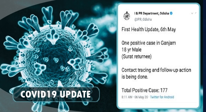ଭୁବନେଶ୍ୱର,୬।୫:(ବ୍ୟୁରୋ)-ରାଜ୍ୟରେ ଆଉ ଜଣେ କରୋନା ପଜିଟିଭ ଚିହ୍ନଟ ହୋଇଛନ୍ତି। ଏହାକୁ ମିଶାଇ ଓଡ଼ିଶାରେ ଆକ୍ରାନ୍ତଙ୍କ ସଂଖ୍ୟା ୧୭୭ରେ ପହଞ୍ଚିଛି। ତେବେ ଏହି ଆକ୍ରାନ୍ତଜଣକ ଗଂଜାମ ଜିଲାର ଏବଂ ସୁରତରୁ ଫେରିଛନ୍ତି ବୋଲି ବୁଧବାର ଲୋକ ସୂଚନା ଓ ସମ୍ପର୍କ ବିଭାଗ ତରଫରୁ ଟୁଇଟ କରି ସୂଚନା ଦିଆଯାଇଛି।