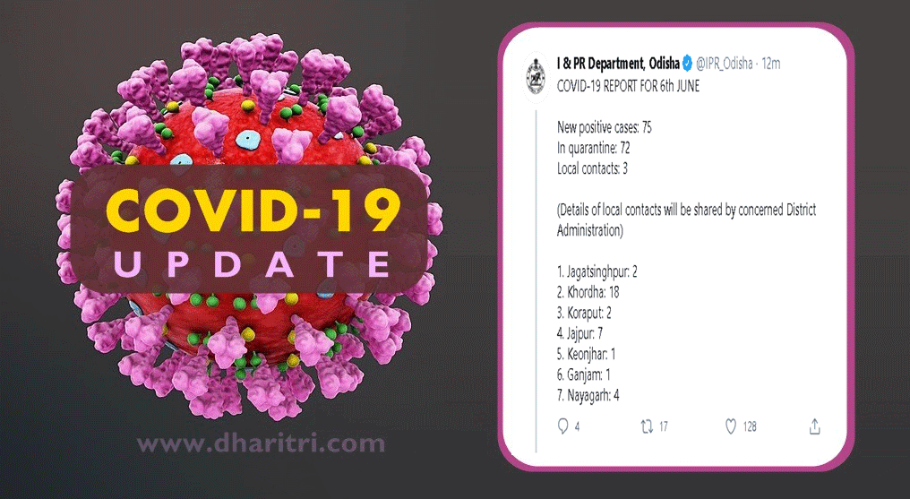ଭୁବନେଶ୍ୱର,୭।୬(ବ୍ୟୁରୋ): ରାଜ୍ୟରେ ପୁଣି ୭୫ କରୋନା ପଜିଟିଭ୍ ଚିହ୍ନଟ ହୋଇଛନ୍ତି। ସେଥିରୁ ୭୨ଜଣ କ୍ୱାରାଣ୍ଟାଇନ୍ ସେଣ୍ଟରର ଥିବା ବେଳେ ଲୋକାଲ୍ କେସ୍ ୩ ରହିଛି। ତେବେ ଏହାକୁ ମିଶାଇ ରାଜ୍ୟରେ ମୋଟ ସଂକ୍ରମିତଙ୍କ ସଂଖ୍ୟା ୨,୮୫୬ରେ ପହଞ୍ଚିଛି। ଏ ନେଇ ରବିବାର ରାଜ୍ୟ ସୂଚନା ଓ ଲୋକ ସମ୍ପର୍କ ବିଭାଗ ପକ୍ଷରୁ ସୂଚନା ଦିଆଯାଇଛି। ଏବେ ୧୧୨୯ ଆକ୍ଟିଭ କେସ୍ ରହିଥିବା ବେଳେ ୧୭୧୬ ସୁସ୍ଥ ହୋଇ ଘରକୁ ଫେରିଛନ୍ତି। ସେହିଭଳି ୮ଜଣଙ୍କ କରୋନାରେ ମୃତ୍ୟୁ ଘଟିଥିବା ବିଭାଗ ପକ୍ଷରୁ କୁହାଯାଇଛି।