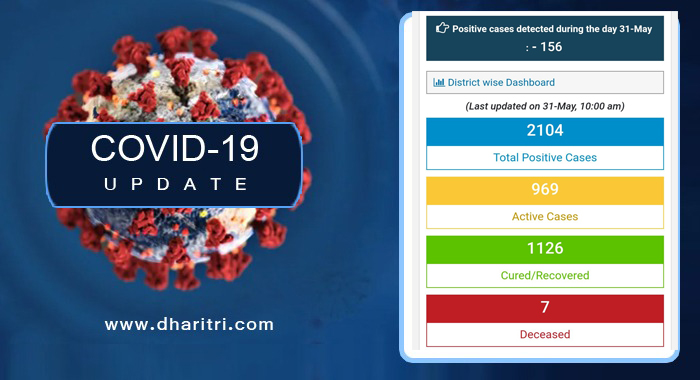 ସୂଚନାଯୋଗ୍ୟ, ରାଜ୍ୟରେ ବର୍ତ୍ତମାନ ସୁଦ୍ଧା ଚିହ୍ନଟ ହୋଇଥିବା ୨୧୦୪ କରୋନା ଆକ୍ରାନ୍ତଙ୍କ ମଧ୍ୟରୁ ୯୬୯ ଜଣ ଚିକିତ୍ସାଧୀନ ଅଛନ୍ତି। ୧୧୨୬ ଜଣ ସୁସ୍ଥ ହୋଇଥିବା ବେଳେ ୭ ଜଣଙ୍କ ମୃତ୍ୟୁ ଘଟିଛି।