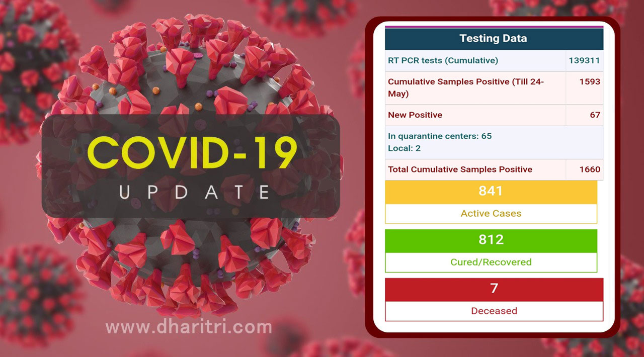 ଭୁବନେଶ୍ୱର,୨୮।୫(ବ୍ୟୁରୋ): ରାଜ୍ୟରେ ଗୁରୁବାର ସକାଳେ ଆଉ ୬୭ କରୋନା ପଜିଟିଭ୍ ଚିହ୍ନଟ ହୋଇଛନ୍ତି। ଏହାକୁ ମିଶାଇ ରାଜ୍ୟରେ ମୋଟ କରୋନା ଆକ୍ରାନ୍ତଙ୍କ ସଂଖ୍ୟା ୧୬୬୦କୁ ବୃଦ୍ଧି ହୋଇଛି। ଏନେଇ ରାଜ୍ୟ ସ୍ବାସ୍ଥ୍ୟ ଓ ପରିବାର କଲ୍ୟାଣ ବିଭାଗ ପକ୍ଷରୁ ସୂଚନା ଦିଆଯାଇଛି। ୧୦ଜିଲାରୁ ନୂଆ ଚିହ୍ନଟ ହୋଇଥିବା ଆକ୍ରାନ୍ତଙ୍କ ମଧ୍ୟରୁ ୬୫ କ୍ୱାରାଣ୍ଟାଇନ୍ ସେଣ୍ଟରର ଓ ୨ଟି ଲୋକାଲ କେସ୍ ରହିଥିବା ଜଣାପଡ଼ିଛି। ଗଞ୍ଜାମ ଜିଲାରେ ସର୍ବାଧିକ ୨୬ଜଣ କରୋନା ଆକ୍ରାନ୍ତ ଚିହ୍ନଟ ହୋଇଥିବା ବେଳେ ଯାଜପୁର ଓ ଖୋର୍ଦ୍ଧାରେ ୧୧ଜଣ ରହିଛନ୍ତି। ସେହିପରି ନୟାଗଡ଼ରେ ୭, ବଲାଙ୍ଗୀର ଓ ଜଗତସିଂହପୁରରେ ୨ଜଣ, କେନ୍ଦୁଝର ୧, ସମ୍ବଲପୁର ୨, ସୁବର୍ଣ୍ଣପୁର ୪, ବରଗଡ଼ରେ ଜଣେ ଲେଖାଏ କରୋନା ପଜିଟିଭ୍ ଚିହ୍ନଟ ହୋଇଛନ୍ତି। ରାଜ୍ୟରେ ୧୬୬୦ ନୂଆ ଚିହ୍ନଟ ହୋଇଥିବା କରୋନା ଆକ୍ରାନ୍ତଙ୍କ ମଧ୍ୟରୁ ୮୪୧ଜଣ ଚିକିତ୍ସିତ ହେଉଥିବା ବେଳେ ୮୧୨ଜଣ ସୁସ୍ଥ ହୋଇଛନ୍ତି। ସେଥିମଧ୍ୟରୁ ୭ଜଣଙ୍କ ମୃତ୍ୟୁ ଘଟିଛି ବୋଲି ସ୍ବାସ୍ଥ୍ୟ ବିଭାଗ ପକ୍ଷରୁ ସୂଚନା ରହିଛି।