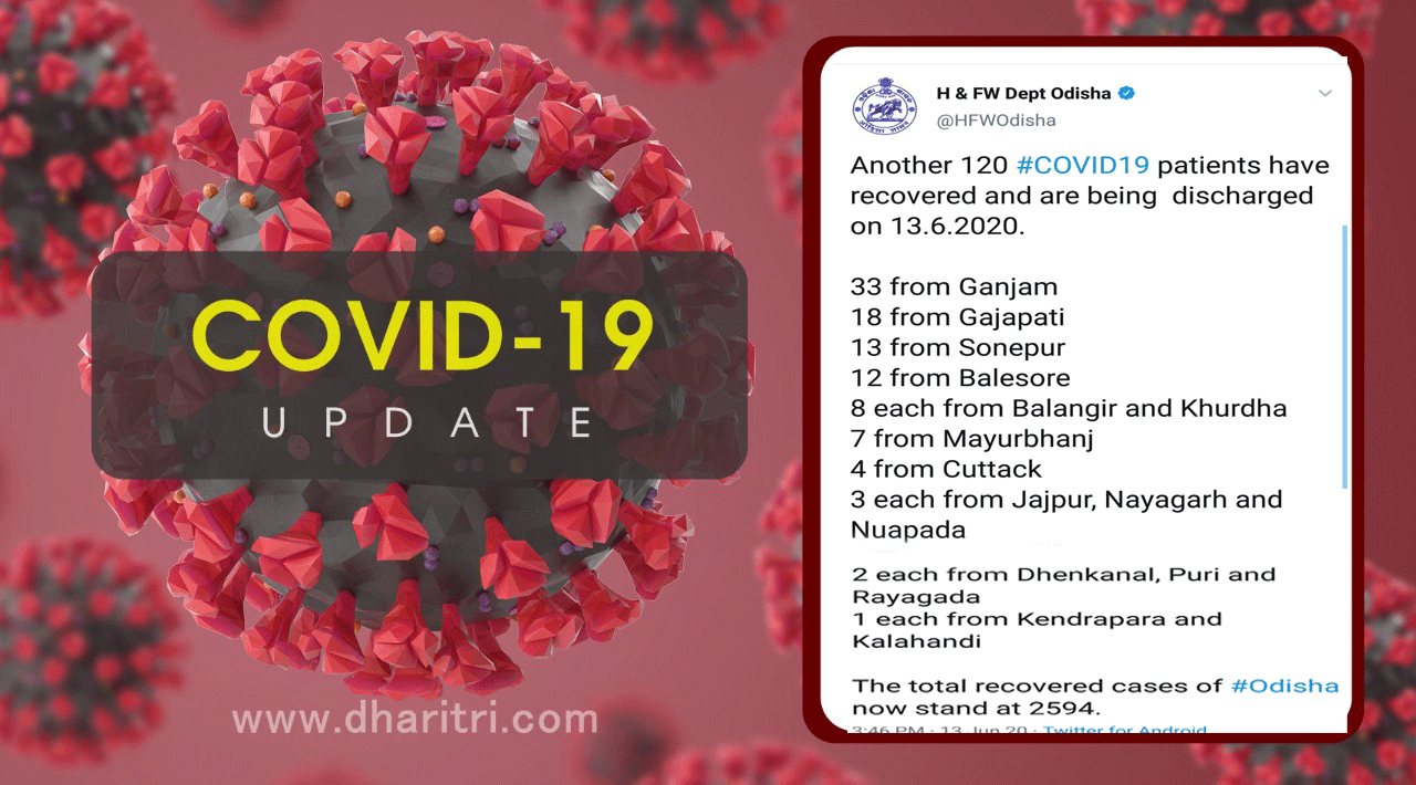 CORONAVIRUS UPDATE: ସୁସ୍ଥ ହେଲେ ଆଉ୧୨୦, ରାଜ୍ୟରେ ମୋଟ ଆରୋଗ୍ୟ ସଂଖ୍ୟା ୨୫୯୪କୁ ବୃଦ୍ଧି