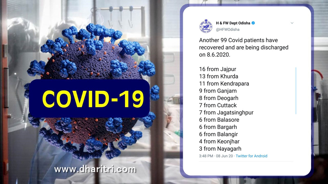 CORONAVIRUS UPDATE: ସୁସ୍ଥ ହେଲେ ୯୯ କରୋନା ଆକ୍ରାନ୍ତ: ରାଜ୍ୟରେ ଆରୋଗ୍ୟ ସଂଖ୍ୟା ୧୯୯୩