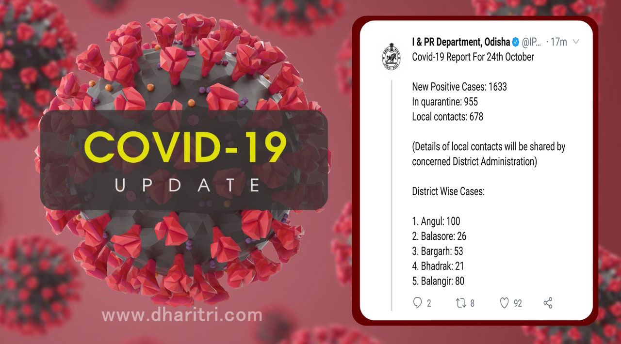 CORONAVIRUS UPDATE: ରାଜ୍ୟରେ ୧୬୩୩ ନୂଆ ପଜିଟିଭ୍‌ ଚିହ୍ନଟ, କମୁଛି ସଂଖ୍ୟା