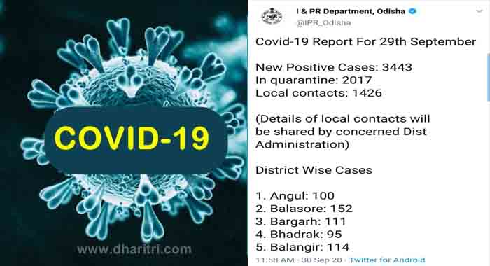 CORONAVIRUS UPDATE: ଆଜି ରାଜ୍ୟରେ ପୁଣି ୩୪୪୩ ପଜିଟିଭ୍‌ ଚିହ୍ନଟ, ଖୋର୍ଦ୍ଧାରୁ ସର୍ବାଧିକ
