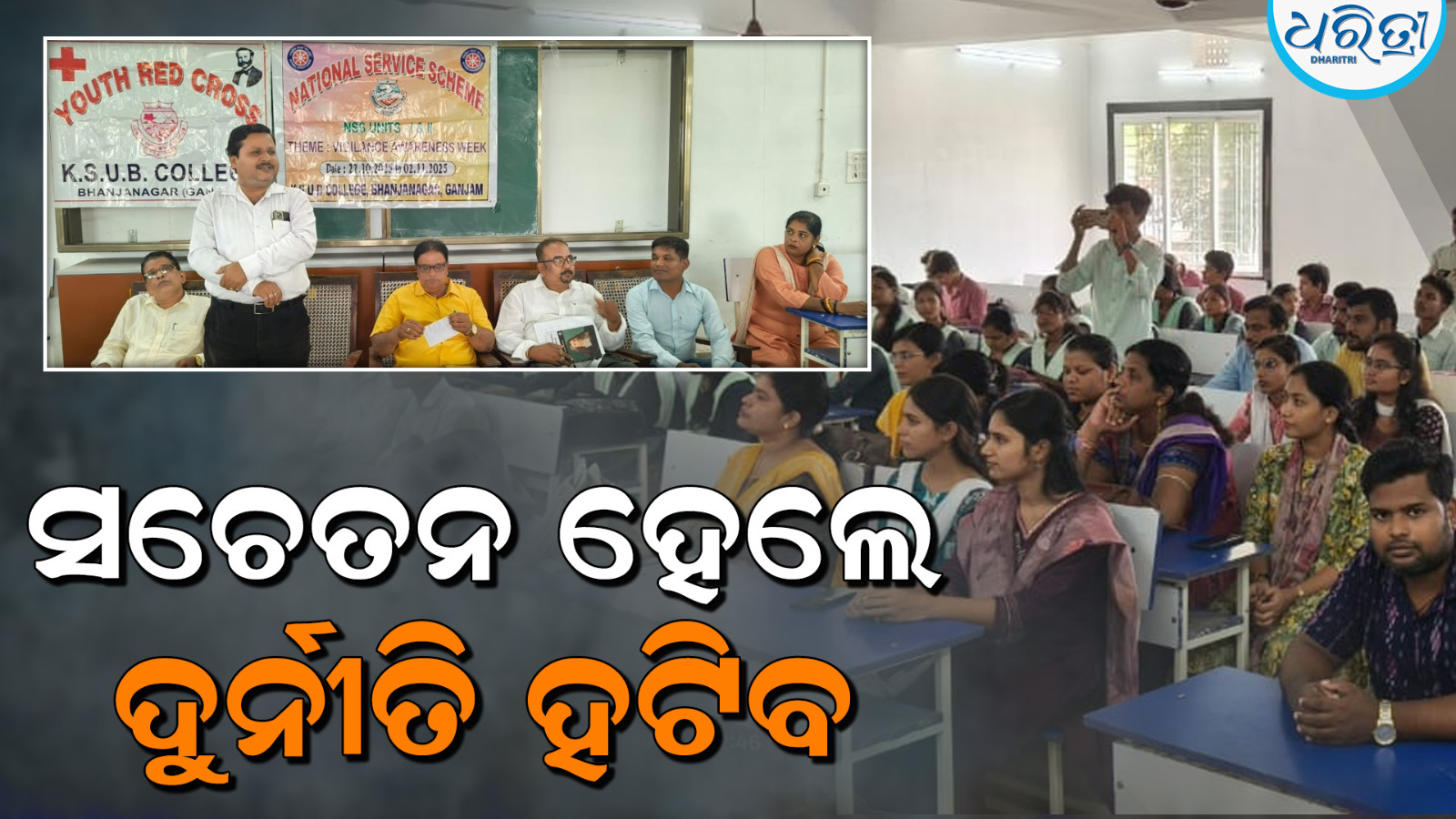 ଭଞ୍ଜନଗର,୧ା୧୧(ବାବୁଲା ପ୍ରଧାନ): ଗଞ୍ଜାମ ଜିଲା ଭଞ୍ଜନଗର କବିସମ୍ରାଟ ଉପେନ୍ଦ୍ର ଭଞ୍ଜ ମହାବିଦ୍ୟାଳୟରେ ଶନିବାର ଦୁର୍ନୀତି ନିବାରଣ ସପ୍ତାହ ପାଳିତ ହୋଇଯାଇଛି। ଏଥିରେ ଅତିଥିମାନେ ଯୋଗଦେଇ କର୍ମଚାରୀ, ସାଧାରଣଜନତା ଏବଂ ଛାତ୍ରୀଛାତ୍ରଙ୍କ ମଧ୍ୟରେ ସଚେତନତା ବଢ଼ିଲେ ହିଁ ଯାଇ ଦୁର୍ନୀତିକୁ ରୋକାଯାଇ ପାରିବ ବୋଲି କହିଥିଲେ। ଜାତୀୟ ସେବା ଯୋଜନା ଶାଖା ୧ ଓ ୨ ସମେତ ଯୁବ ରେଡ୍କ୍ରସ୍ ପକ୍ଷରୁ ମିଳିତ ଭାବେ ଏହି କାର୍ଯ୍ୟକ୍ରମ ହୋଇଥିଲା। ଏଥିରେ କଲେଜ ଅଧ୍ୟକ୍ଷ ରାଜେନ୍ଦ୍ର କୁମାର ଦାସ ସଭାପତିତ୍ୱ କରିଥିଲେ। ପ୍ରଶାସନିକ ଅଧିକାରୀ ବିଭାସ ଦାସ, ପ୍ରାଧ୍ୟାପକ କୁମୁନ୍ଦ ଚନ୍ଦ୍ର ମହାପାତ୍ର, ପ୍ରଶାନ୍ତ କୁମାର ରଥ ଆଲୋଚନାରେ ଭାଗ ନେଇ ନିଜର ମତ ରଖିଥିଲେ। କାର୍ଯ୍ୟକ୍ରମକୁ ପରିଚାଳନା କରିବାରେ ଜାତୀୟ ସେବା ଯୋଜନା ଅଧିକାରୀ ବି ପ୍ରଧାନ, ସସ୍ମିତା ଦାସ, ଯୁବ ରେଡ୍କ୍ରସ୍ ଅଧିକାରୀ ବିଦେଶୀ ରାଉତ ପ୍ରମୁଖ ସହଯୋଗ କରିଥିଲେ। ଏହା ପୂର୍ବରୁ ସର୍ଦ୍ଦାର ବଲ୍ଲଭ ଭାଇ ପଟେଲଙ୍କ ୧୫୦ ତମ ଜୟନ୍ତୀ ଅବସରରେ ଛାତ୍ରୀଛାତ୍ରଙ୍କ ମଧ୍ୟରେ ବିଭିନ୍ନ ପ୍ରତିଯୋଗିତା ମଧ୍ୟ ହୋଇଥିଲା।