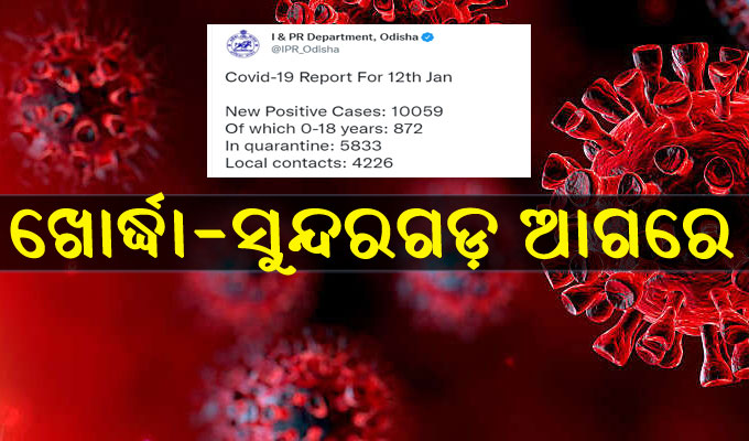 ଭୁବନେଶ୍ୱର,୧୩।୧(ବ୍ୟୁରୋ): ଦୀର୍ଘଦିନର ବ୍ୟବଧାନ ପରେ ପୁଣି ରେକର୍ଡସ୍ତରରେ ପହଞ୍ଚିଲା କରୋନା ସଂକ୍ରମଣ। ରାଜ୍ୟରେ ଗତ ୨୪ ଘଣ୍ଟା ମଧ୍ୟରେ ୧୦,୦୫୯ କରୋନା ପଜିଟିଭ୍ ଚିହ୍ନଟ ହୋଇଛନ୍ତି। ସେଥିରୁ ୫,୮୩୩ କ୍ୱାରାଣ୍ଟାଇନ୍ରୁ ଥିବା ବେଳେ ୪,୨୨୬ ଲୋକାଲ କେସ୍ ରହିଛି। ସେହିଭଳି ସଂକ୍ରମିତଙ୍କ ମଧ୍ୟରେ ୮୭୨ଜଣ ପିଲା ରହିଛନ୍ତି। ଏନେଇ ଗୁରୁବାର ରାଜ୍ୟ ସୂଚନା ଓ ଲୋକ ସମ୍ପର୍କ ବିଭାଗ ପକ୍ଷରୁ ଟୁଇଟ୍ କରି ସୂଚନା ଦିଆଯାଇଛି।