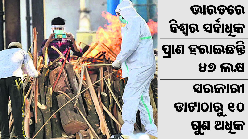 ସରକାରୀ ତଥ୍ୟ ଅନୁସାରେ ଭାରତରେ କୋଭିଡ୍ ମୃତ୍ୟୁ ପ୍ରାୟ ୫ ଲକ୍ଷ ଦର୍ଶାଯାଇଥିବାବେଳେ ବାସ୍ତବରେ ତାହା ପାଖାପାଖି ୧୦ ଗୁଣ ଅଧିକ ହେବ, ଯାହାକି ବିଶ୍ୱରେ ସର୍ବାଧିକ। ଡବ୍ଲ୍ୟୁଏଚ୍ଓ ଆକଳନ ଅନୁସାରେ ଭାରତରେ କରୋନା ମୃତ୍ୟୁ ୪୭ ଲକ୍ଷରୁ ଊର୍ଦ୍ଧ୍ୱ, ଯାହାକି ସାରା ବିଶ୍ୱରେ ଏହି ଭୂତାଣୁରେ ପ୍ରାଣ ହରାଇଥିବା ଲୋକଙ୍କ ପ୍ରାୟ ଏକ ତୃତୀୟାଂଶ। କରୋନାରେ ଆକ୍ରାନ୍ତ ହୋଇ ମୃତ୍ୟୁ ଘଟିଥିବା ଲୋକଙ୍କ ମଧ୍ୟରୁ ୫୭% ପୁରୁଷ ଏବଂ ୪୩% ମହିଳା ରହିଛନ୍ତି। ବିଶେଷ କରି ନିମ୍ନ ମଧ୍ୟମ ଆୟ ବର୍ଗର ଦେଶରେ ମୃତ୍ୟୁହାର ସର୍ବାଧିକ ରହିଛି। କୋଭିଡ୍ ମହାମାରୀ ସମୟରେ ଡାକ୍ତରଖାନାରେ ଭିଡ଼ ତଥା ଅନ୍ୟ ସୁବିଧା ଅଭାବରୁ ଚିକିତ୍ସାରୁ ବଞ୍ଚିତ ହୋଇ ପ୍ରାଣ ହରାଇଥିବା ଲୋକଙ୍କୁ ମଧ୍ୟ ଆକଳନରେ ସାମିଲ କରାଯାଇଛି। ଭୂତାଣୁରେ ଆକ୍ରାନ୍ତ ହୋଇ ମୃତ୍ୟୁ ଘଟିଥିବା ଲୋକଙ୍କ ସଂଖ୍ୟା ପ୍ରାୟ ୯୫ ଲକ୍ଷ ରହିଥିବାବେଳେ ପରୋକ୍ଷ ମୃତ୍ୟୁ ୫୪ ଲକ୍ଷ ବୋଲି ଡବ୍ଲ୍ୟୁଏଚ୍ଓ କହିଛି। ପ୍ରକୃତ ତଥ୍ୟଠାରୁ ଇଜିପ୍ଟରେ ୧୧.୬ ଗୁଣ, ଭାରତରେ ୯.୯ ଗୁଣ, ପାକିସ୍ତାନରେ ୮ ଗୁଣ ଅଧିକ ଲୋକ କରୋନାରେ ପ୍ରାଣ ହରାଇଛନ୍ତି। କେବଳ ଉତ୍ତରପୂର୍ବ ଏସିଆ, ୟୁରୋପ ଏବଂ ଆମେରିକାରେ ସାଧାରଣ ମୃତ୍ୟୁଠାରୁ କରୋନାଜନିତ ମୃତ୍ୟୁ ପ୍ରାୟ ୮୪%। ଏହା ଏକ ବିପର୍ଯ୍ୟୟ। ମୃତ୍ୟୁସଂଖ୍ୟା ଠିକ୍ ଭାବେ ଗଣନା କରା ନ ଗଲେ ଭବିଷ୍ୟତରେ ଏପରି ମହମାରୀର ମୁକାବିଲା କରିବା ନିମନ୍ତେ ଆମେ ପ୍ରସ୍ତୁତ ହୋଇପାରିବା ନାହିଁ ବୋଲି ଡବ୍ଲ୍ୟୁଏଚ୍ଓ ଡାଟା ଡିପାର୍ଟମେଣ୍ଟର ଡା. ସମୀରା ଆସ୍ମା କହିଛନ୍ତି।