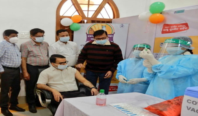 ବାରିପଦା ଅଫିସ,୬।୨: ମୟୂରଭଞ୍ଜ ଜିଲାରେ କୋଭିଡ-୧୯ର ଦ୍ବିତୀୟ ପଯ୍ୟାୟ ଟିକାକରଣ ‘ମୋ ଟିକା ମୋ ସୁରକ୍ଷା’ କାର୍ଯ୍ୟକ୍ରମ ଜିଲାପାଳଙ୍କ କାର୍ଯାଳୟ ପରିସରରେ ଶନିବାର ଅନୁଷ୍ଠିତ ହୋଇଛି । ଜିଲାପାଳ ବିନୀତ ଭରଦ୍ବାଜ ଏହାର ଶୁଭ ଉଦଘାଟନ କରିଥିବା ବେଳେ ଏସ୍ପି ସ୍ମିଥ ପି.ପରମାର, ଜିଲା ଜରୁରୀକାଳୀନ ଅଧିକାରୀ ସୁଜୟ ପତି ପ୍ରମୁଖ ଉପସ୍ଥିତ ଥିଲେ । ସର୍ବ ପ୍ରଥମେ ଜିଲାପାଳ ଏହି ଟିକା ନେବା ପରେ ଏସ୍ପିଙ୍କ ସମେତ କୋଭିଡ ଯୋଦ୍ଧାମାନେ ଟିକା ନେଇଛନ୍ତି। କାର୍ଯ୍ୟକ୍ରମରେ ଜିଲା ସୂଚନା ଓ ପ୍ରସାରଣ ଅଧିକାରୀ ରବୀନ୍ଦ୍ର ନାଏକ ଉପସ୍ଥିତ ଥିଲେ ।