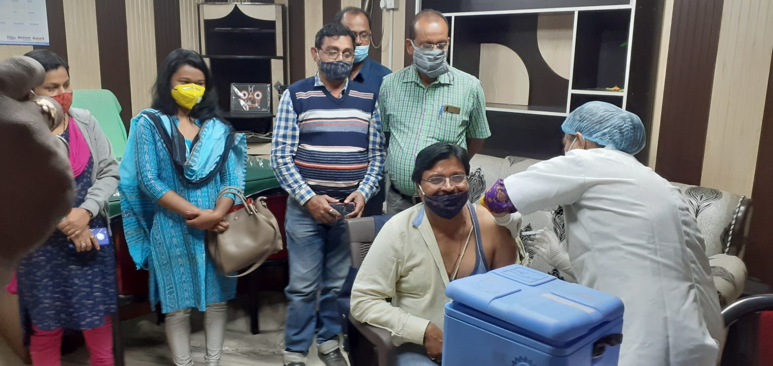ବେଲପାହାଡ଼,୯।୨(ଡି.ଏନ୍.ଏ.): ଝାରସୁଗୁଡ଼ା ଜିଲା ବେଲପାହାଡ଼ ପୌରପରିଷଦ କର୍ମଚାରୀଙ୍କ ପାଇଁ ମଙ୍ଗଳବାର କୋଭିଡ୍ ୧୯ ଟିକାକାରଣ ଆରାମ୍ଭ ହୋଇଛି । ଏଥିପାଇଁ ପୌର କାର୍ଯ୍ୟାଳୟରେ ପଞ୍ଜୀକାରଣ କକ୍ଷ, ପ୍ରତୀକ୍ଷା କକ୍ଷ, ଟିକାକରଣ କକ୍ଷ ଓ ଟିକାକରଣ ପରବର୍ତ୍ତୀ ପାର୍ଶ୍ୱ ପ୍ରତୀକ୍ଷା ପରିଚାଳନା କକ୍ଷର ବ୍ୟବସ୍ଥା କରାଯାଇଛି। ପୌର ନିର୍ବାହୀ ଅଧିକାରୀ ଲୋକନାଥ କୁମାର ତିୱାରୀ ଟିକା କାର୍ଯ୍ୟକ୍ରମକୁ ଫିତା କାଟି ଶୁଭାରମ୍ଭ କରିଥିଲେ ଏବଂ ପ୍ରଥମେ ଟିକା ନେଇଥିଲେ। ପରେ ଅନ୍ୟ କର୍ମଚାରୀଙ୍କୁ ତାଲିକା ଅନୁଯାୟୀ ଟିକା ଦିଆଯାଉଛି । ଟିକା ପାଇଁ ସମୁଦାୟ ୧୦୨ ଜଣ ପୌର କର୍ମଚାରୀଙ୍କ ନାମ ପଞ୍ଜିକୃତ କରାଯାଇଛି । ଗତ ସୋମବାର ୧୩ ଜଣ ପୌର କର୍ମଚାରୀ ଲଖନପୁର ବ୍ଲକ ଅଫିସକୁ ଯାଇ କୋଭିଡ୍ ଟିକା ନେଇଥିଲେ।