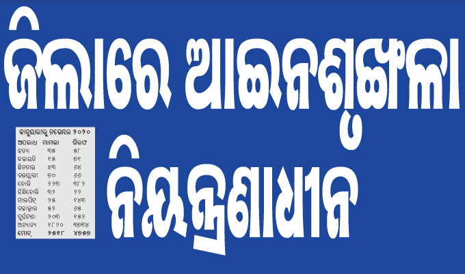 ଖୋର୍ଦ୍ଧା ଅଫିସ,୨୯।୧୨: ଖୋର୍ଦ୍ଧା ଜିଲାରେ ଆଇନଶୃଙ୍ଖଳା ପରିସ୍ଥିତି ନିୟନ୍ତ୍ରଣାଧୀନ ରହିଛି। ଲକ୍‌ଡାଉନ, ଶଟ୍‌ଡାଉନ ସମୟରେ କୋଭିଡ୍‌ କଟକଣା, ଅପରାଧ, ଦୋକାନ ବଜାର ମଧ୍ୟରେ ଭିଡ଼ ନିୟନ୍ତ୍ରଣ ପୋଲିସ ପାଇଁ ଏକ ଚାଲେଞ୍ଜ ରହିଥିଲା। କରୋନା ସମୟରେ ହତ୍ୟା, ଲୁଟ୍‌, ଡକାୟତି ଭଳି ଘଟଣାରେ ମଧ୍ୟ ପୋଲିସକୁ ବଡ଼ ସଫଳତା ମିଳିଛି ବୋଲି ଜିଲା ଆରକ୍ଷୀ ଅଧୀକ୍ଷକ ଅଜୟ ପ୍ରତାପ ସ୍ବାଇଁ କହିଛନ୍ତି।