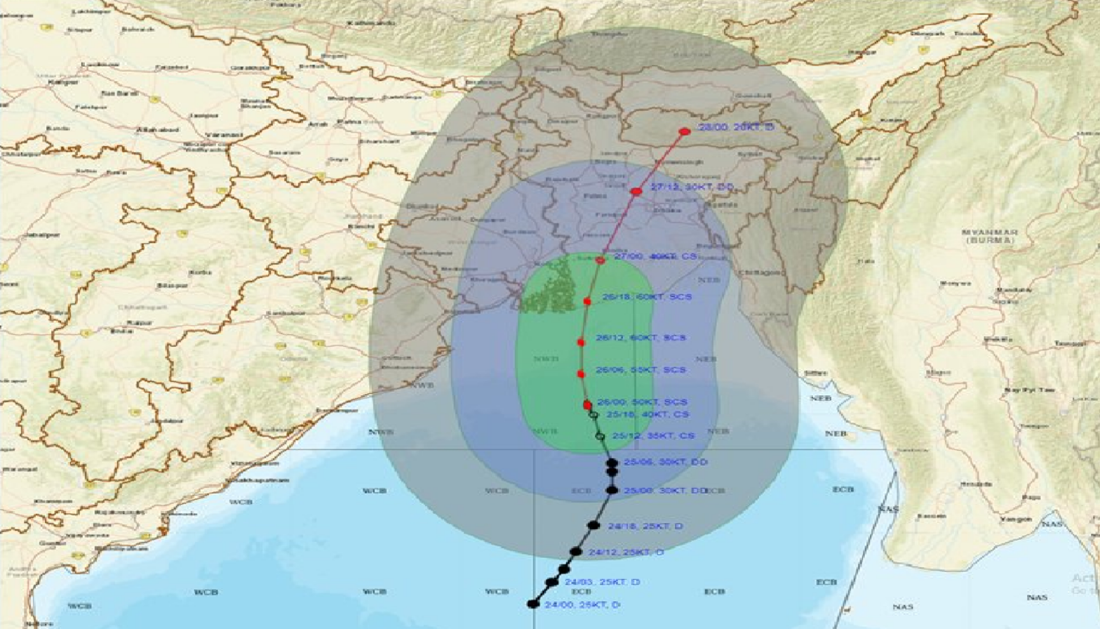 ବାତ୍ୟା ରେମାଲ ଉତ୍ତର ଦିଗକୁ ଗତି କରି, ଆହୁରି ତୀବ୍ର ହେବା ସହ ବାଂଲାଦେଶ ଏବଂ ପଶ୍ଚିମବଙ୍ଗ ଉପକୂଳବର୍ତ୍ତୀ ଅଞ୍ଚଳରେ ମେ ୨୬ ମଧ୍ୟରାତ୍ରିରେ ଏକ ଭିଷଣ ବାତ୍ୟା ଭାବରେ ଉପକୁଳ ଅତିକ୍ରମ କରିବ।