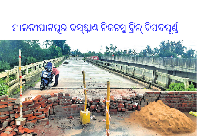 ପୁରୀରୁ ଭୁବନେଶ୍ୱର ଯିବାବେଳେ ମାଳତିପାଟପୁର ବସ୍ଷ୍ଟାଣ୍ଡ ଆଗକୁ କାଠପୋଲ ଛକରେ ରହିଛି ଏହି ବ୍ରିଜ୍। ଗୋଟିଏ ପାର୍ଶ୍ୱ (ପୁରୀ ପଟୁ ଗଲେ ଡାହାଣ ପାର୍ଶ୍ୱ) ବ୍ରିଜ୍ ବିପଦସଙ୍କୁଳ ଅବସ୍ଥାରେ ଥିବାରୁ ପ୍ରାୟ ୩ମାସ ହେବ ଏହାକୁ ସିଲ୍ କରି ଦିଆଯାଇଛି।