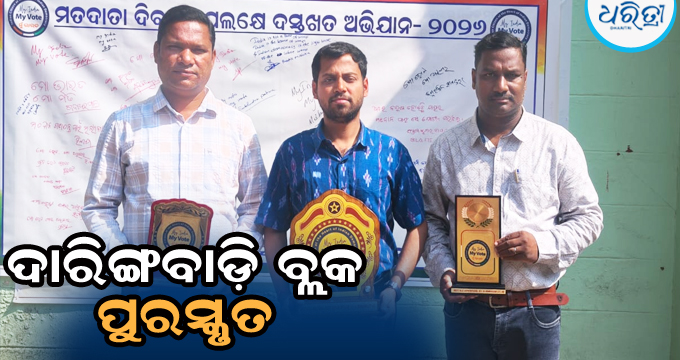 ସେହିପରି ଉକ୍ତ ବ୍ଲକର ଶ୍ରେଷ୍ଠ ବିଏଲ୍ଓ ପର୍ଯ୍ୟବେକ୍ଷକ ଭାବେ କିରିକୁଟି ସିଆରସିସି ରାକେଶ କୁମାର ସାହୁ ଏବଂ ଶ୍ରେଷ୍ଠ ବିଏଲ୍ଓ ଭାବେ ଉକ୍ତ ବ୍ଲକ ଶ୍ରାନିକେତା ପଞ୍ଚାୟତର ୧୭୫ ନଂ ବୁଥ୍ର ବିଏଲଓ ସଂଗ୍ରାମ ନାୟକଙ୍କୁ ଜିଲା ପ୍ରଶାସନ ସମ୍ବର୍ଦ୍ଧିତ କରିବା ସହ ମାନପତ୍ର ଏବଂ ଟ୍ରଫି ପ୍ରଦାନ କରିଛି। ଜିଲା ପ୍ରଶାସନ ପକ୍ଷରୁ ଅତିରିକ୍ତ ଜିଲାପାଳ ରମେଶ ଚନ୍ଦ୍ର ଜେନା, କୁଶଳ ଚନ୍ଦ୍ର ନାୟକ ଏବଂ ଫୁଲବାଣୀ ଆଇଟିଡିଏର ପ୍ରକଳ୍ପ ପ୍ରଶାସକ ତଥା ଜିଲା ସୂଚନା ଓ ଲୋକ ସମ୍ପର୍କ ଅଧିକାରୀ ଗଦାଧର ପାତ୍ର ପ୍ରମୁଖ ମଞ୍ଚରେ ଉପସ୍ଥିତ ରହି ଏହି ସମ୍ବର୍ଦ୍ଧିତ କରିଛନ୍ତି। ଦାରିଙ୍ଗବାଡ଼ି ପ୍ରଶାସନର ଏହି ସଫଳତାକୁ ନେଇ ଚାରିଆଡ଼େ ଶୁଭେଚ୍ଛାର ସୁଅ ଛୁଟୁଥିବା ବେଳେ ଜାତୀୟ ଭୋଟର ଦିବସରେ ଦାରିଙ୍ଗବାଡ଼ି ବ୍ଲକ ପୁରସ୍କୃତ ହେବା ଏହା ପ୍ରଥମ ଘଟଣା ବୋଲି ଜଣାପଡ଼ିଛି।