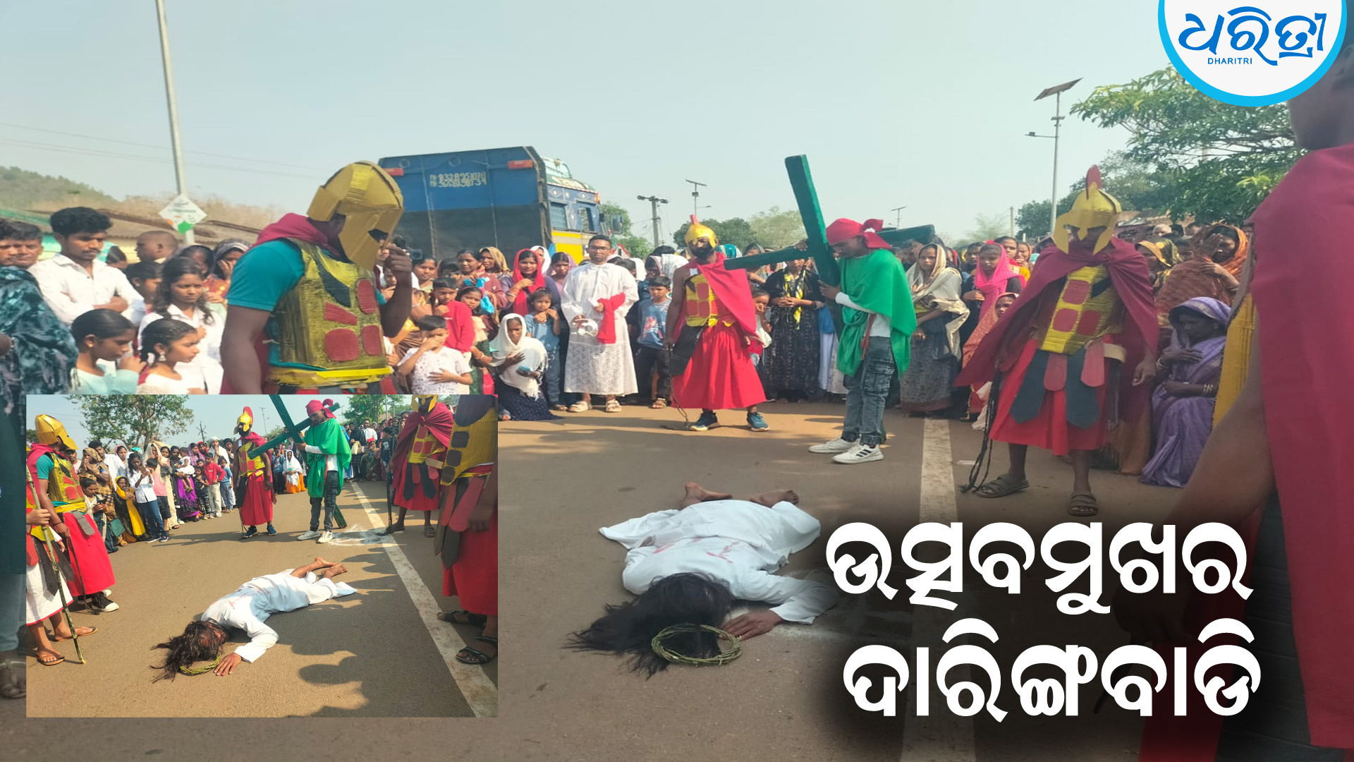 ଦାରିଙ୍ଗବାଡି,୩।୪ (ଅରୁଣ ସାହୁ): ଗୁଡ୍ ଫ୍ରାଇଡେ ପାଇଁ କନ୍ଧମାଳ ଜିଲା ଉତ୍ସବ ମୁଖର ହୋଇଥିବା ବେଳେ ଦାରିଙ୍ଗବାଡି ବ୍ଲକ ଅଞ୍ଚଳରେ ମଧ୍ୟ ଏହି ପର୍ବ ବଡ଼ ଧୁମଧାମରେ ପାଳିତ ହୋଇଯାଇଛି। ଉକ୍ତ ବ୍ଲକର ବ୍ରାହ୍ମଣୀଗାଁ ସମେତ ଗଦାପୁର, କାଟିଙ୍ଗିଆ, ତାଜୁଙ୍ଗିଆ, ସରାମୁଳି, ହାତୀମୁଣ୍ଡା, ସିମନବାଡି, ଦାରିଙ୍ଗବାଡି ଆଦି ଅଞ୍ଚଳରେ ପାଳନ କରାଯାଇଥିବା ବେଳେ ୪୦ଦିନ ଧରି ଚାଲିଥିବା ଉପାସନା ଆଜି ପୂର୍ଣ୍ଣାହୁତି ହୋଇଯାଇଛି। ଏହି ପ୍ରରିପ୍ରେକ୍ଷୀରେ ଦାରିଙ୍ଗବାଡି କ୍ୟାଥିଲିକ ଚର୍ଚ୍ଚରେ ପବିତ୍ର ଭାବନା ଓ ଭାବବିହୋଳ ମାହୋଲ ସୃଷ୍ଟି ହୋଇଥିଲା। ଗୁଡ୍ ଫ୍ରାଇଡେରେ ଶ୍ରଦ୍ଧାଳୁମାନେ ଏକତ୍ରିତ ହୋଇ ପ୍ରଭୁ ଯୀଶୁଙ୍କର ଯାତନା ଓ ବଳିଦାନକୁ ସ୍ମରଣ କରିଥିଲେ। ଦାରିଙ୍ଗବାଡି ପାରିସରେ ଧର୍ମ ଯାଜକ ଏଫଆର କରୁଣାକର ଦିଗାଲ ଏବଂ ରାଜୀବ ସିଂଙ୍କ ଦ୍ୱାରା ସାମୁହିକ ପ୍ରାର୍ଥନା, ଯଜ୍ଞ, ଆଦି ସମ୍ପାଦନା କରାଯାଇଥିଲା। ଯାହାକି ଶ୍ରଦ୍ଧାଳୁଙ୍କ ମଧ୍ୟରେ ପବିତ୍ର ଭାବନା ଜାଗ୍ରତ ହୋଇଥିଲା।