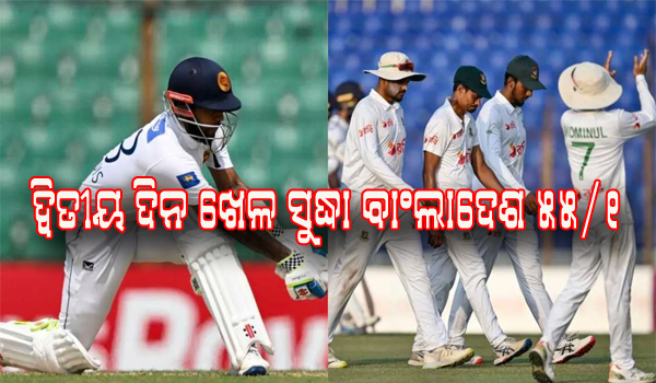 ଚଟ୍ଟୋଗ୍ରାମ,୩୧ା୩: ସ୍ଥାନୀୟ ଜହୁର ଅହମଦ ଚୌଧୁରୀ ଷ୍ଟାଡିୟମରେ ଚାଲିଥିବା ଦ୍ୱିତୀୟ ତଥା ଅନ୍ତିମ କ୍ରିକେଟ ଟେଷ୍ଟରେ ଶ୍ରୀଲଙ୍କା ପ୍ରଥମ ଇନିଂସ୍ରେ ୫୩୧ ରନ୍ ସଂଗ୍ରହ କରିଛି। ଜବାବରେ ରବିବାର ଦ୍ୱିତୀୟ ଦିବସ ଖେଳ ଶେଷ ସୁଦ୍ଧା ବାଂଲାଦେଶ ୧ ଉଇକେଟ ବିନିମୟରେ ୫୫ ରନ୍ କରିଛି। ଘରୋଇ ଦଳ ଶ୍ରୀଲଙ୍କାର ପ୍ରଥମ ଇନିଂସ୍ ସ୍କୋରଠାରୁ ଆହୁରି ୪୭୬ ରନ୍ ପଛରେ ରହିଛି।