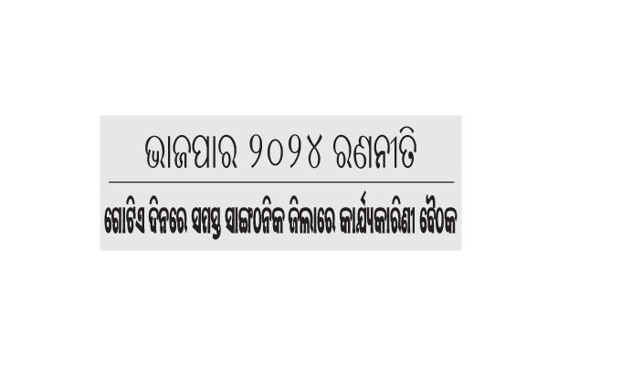 ଭୁବନେଶ୍ୱର,୨୯।୧(ବ୍ୟୁରୋ): ୨୦୨୪ ପାଇଁ ଭାଜପା ରାଜ୍ୟ କାର୍ଯ୍ୟକାରିଣୀରେ ପ୍ରସ୍ତୁତ ୨ସୂତ୍ରୀ କାର୍ଯ୍ୟକ୍ରମକୁ ତୃଣମୂଳ ସ୍ତରରେ ପହଞ୍ଚାଇବା ଲକ୍ଷ୍ୟରେ ଏବଂ ରାଜ୍ୟର ସାମ୍ପ୍ରତିକ ରାଜନୈତିକ ଓ ସାମାଜିକ ପ୍ରସଙ୍ଗକୁ ନେଇ ଶନିବାର ସମସ୍ତ ସାଙ୍ଗଠନିକ ଜିଲାରେ ଗୋଟିଏ ଦିନରେ କାଯର୍ୟକାରିଣୀ ବୈଠକ ଅନୁଷ୍ଠିତ ହୋଇଛି। ତୃଣମୂଳ ସ୍ତରରେ ବୁଥ୍କୁ ସଶକ୍ତ ଓ ସକ୍ରିୟ କରିବା ପାଇଁ ରଣନୀତି ପ୍ରସ୍ତୁତ ହୋଇଛି। କେନ୍ଦ୍ରରେ ନରେନ୍ଦ୍ର ମୋଦି ସରକାର ଓଡ଼ିଶା ପାଇଁ ଦେଉଥିବା ସମସ୍ତ କେନ୍ଦ୍ରୀୟ ଯୋଜନାର ଲାଭ କିଭଳି ଓଡ଼ିଶା ଲୋକ ପାଇବେ ଏ ବିଷୟରେ ଅବଗତ କରିବାକୁ ଜିଲା କାର୍ଯ୍ୟକାରିଣୀ ବୈଠକରେ ନିଷ୍ପତ୍ତିି ନିଆଯାଇଛି।