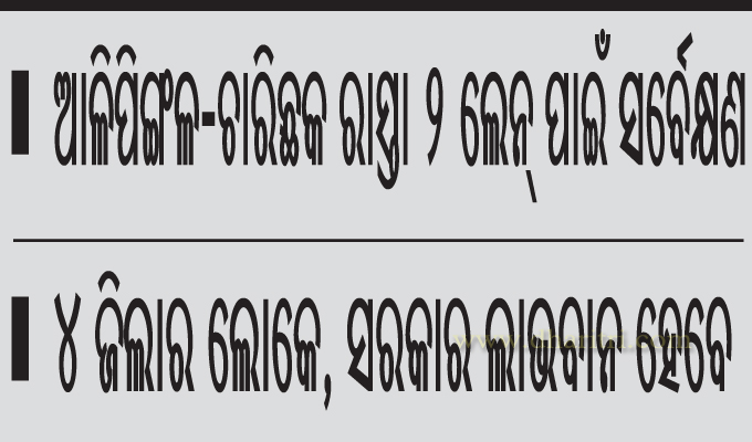 କଟକ ଜିଲା ନିଆଳି ବ୍ଲକ ଅନ୍ତର୍ଗତ ଜଲାରପୁର ନିକଟରୁ ଜଗତ୍ସିଂହପୁର ଜିଲା ଅରଖକୁଦ ପର୍ଯ୍ୟନ୍ତ ରାସ୍ତା ପ୍ରଶସ୍ତୀକରଣ ଓ ନବୀକରଣ ପାଇଁ ମୁଖ୍ୟମନ୍ତ୍ରୀ ନବୀନ ପଟ୍ଟନାୟକ ପ୍ରଥମେ ଘୋଷଣା ଓ ନିକଟରେ ଅର୍ଥ ଅନୁମୋଦନ କରିଛନ୍ତି । ଏହି କାମ ଯୁଦ୍ଧକାଳୀନ ଭିତ୍ତିରେ ଚାଲିଛି। କିନ୍ତୁ ଏହାର ବାସ୍ତବ ଲକ୍ଷ୍ୟ ପୂରଣ ହୋଇପାରିବ ନାହିଁ । ଏ ସମ୍ପର୍କରେ ସ୍ଥାନୀୟ ଅଞ୍ଚଳର କେତେଜଣ ବୁଦ୍ଧିଜୀବୀ ପ୍ରତିକ୍ରିୟାରେ କହିଛନ୍ତି, ବର୍ତ୍ତମାନ ସୁଦ୍ଧା ଜଗତ୍ସିଂହପୁରରୁ ଆଳିପିଙ୍ଗଳ ଓ ସେଠାରୁ କାଳଖ ପର୍ଯ୍ୟନ୍ତ ରାସ୍ତାରେ ସେଭଳି କିଛି ପରିବର୍ତ୍ତନ ଆସିନାହିଁ। ଜଗତ୍ସିଂହପୁରରୁ ଆଳିପିଙ୍ଗଳ ପର୍ଯ୍ୟନ୍ତ ରାସ୍ତାର ବଢ଼େଇବାଙ୍କ ସମେତ କେତେକ ସ୍ଥାନରେ ଓସାର କମ୍ ରହିଛି। ରାସ୍ତା ଅବସ୍ଥା ମଧ୍ୟ ଭଲ ନାହିଁ । ଏହାକୁ ପ୍ରଶସ୍ତ ସହ ନବୀକରଣ କରାଯିବା ଆବଶ୍ୟକ। ଆବଶ୍ୟକସ୍ଥଳେ ସରକାର ଜମି ଅଧିଗ୍ରହଣ କରିବା ଜରୁରୀ। ସେହିପରି ଆଳିପିଙ୍ଗଳ ପୋଲ ପାରି ହୋଇଗଲେ ବଛସାଇଲୋ ପଡ଼େ। ବଛସାଇଲୋ ନିକଟରୁ କାଳଖ ପୋଲ ପର୍ଯ୍ୟନ୍ତ ନଦୀ ବନ୍ଧ ରାସ୍ତା ଓସାର ଯଥେଷ୍ଟ କମ୍ ରହିଛି। ଏପରିକି ୨ଟି ଚାରି ଚକିଆ ଯାନ ପରସ୍ପର ଅତିକ୍ରମ କରିବା ସମ୍ଭବ ନୁହେଁ। ଏହି ରାସ୍ତା ଦୀର୍ଘ ବର୍ଷ ଧରି ଖରାପ ଥିଲେ ସୁଦ୍ଧା ନିକଟରେ ପିଚୁ କାମ ଅନ୍ତିମ ପର୍ଯ୍ୟାୟରେ ପହଞ୍ଚତ୍ଛି। ଏହାଦ୍ୱାରା ବାଇକ୍ ଯାତାୟାତରେ ସୁବିଧା ହେବ। କିନ୍ତୁ ୪ ଚକିଆ ଯାନ ଚଳାଚଳ ପାଇଁ ରାସ୍ତା ପ୍ରଶସ୍ତୀକରଣ ହେବା ନିହାତି ଦରକାର । ଏଥିପ୍ରତି ସରକାର ବିଶେଷ ଦାୟିତ୍ୱବାନ ହେଲେ କେବଳ ଜଗତ୍ସିଂହପୁର ନୁହେଁ ପୁରୀ, କଟକ ଓ ଖୋର୍ଦ୍ଧା ଜିଲାର ଲୋକେ ମଧ୍ୟ ଉପକୃତ ହେବେ।