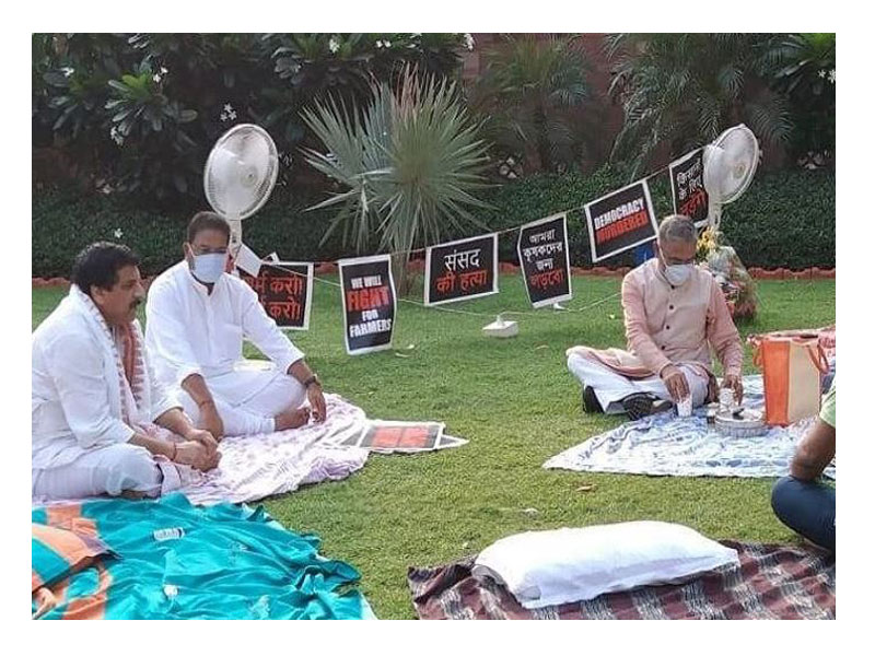ନୂଆଦିଲ୍ଲୀ, ୨୨।୯: ରାଜ୍ୟ ସଭାରେ ଶୃଙ୍ଖଳା ଭଙ୍ଗ କରିଥିବାରୁ ୮ ଏମ୍ପିଙ୍କୁ ନିଲମ୍ବିତ କରାଯାଇଛି। ଏମ୍ପିମାନେ ସଂସଦ ଭବନ ପରିସରରେ ଥିବା ମହାତ୍ମାଗାନ୍ଧୀଙ୍କ ମୂର୍ତ୍ତି ସମ୍ମୁଖରେ ସାରା ରାତି ଧାରଣାରେ ବସିଛନ୍ତି। ମଙ୍ଗଳବାର ସକାଳେ ଏମ୍ପି ମନେଇବା ପାଇଁ ରାଜ୍ୟ ସଭା ଉପବାଚସ୍ପତି ହରିବଂଶ ଚା’ ଧରି ପହଞ୍ଚିଥିବାର ଦୃଶ୍ୟ ଦେଖିବାକୁ ମିଳିଛି। ଧାରଣ ଦେଉଥିବା ଏମ୍ପିମାନେ ହରିବଂଶଙ୍କୁ ସ୍ବାଗତ କରିଥିଲେ। ତେବେ ବୈଚାରିକ ମତଭେଦ ଏବଂ ଦଳୀୟ ନୀତିକୁ ଦୃଷ୍ଟିରେ ରଖି ଚା’କୁ ଧାରଣା ଦେଉଥିବା ଏମ୍ପିମାନେ ଫେରାଇ ଦେଇଥିଲେ। ହରିବଂଶ କହିଥିଲେ ଯେ ଦଳଠାରୁ ବ୍ୟକ୍ତିଗତ ସମ୍ପର୍କ ଭିନ୍ନ। ମୁଁ ଆପଣମାନଙ୍କୁ ଘରକୁ ନିମନ୍ତ୍ରଣ କରିପାରିବି। ସେହିପରି ଆପଣମାନେ ମଧ୍ୟ ସେପରି କରିପାରିବେ। ତେଣୁ ମୁଁ ଆପଣମାନଙ୍କ ପାଖକୁ ସାକ୍ଷାତ କରିବାକୁ ଆସିଛି। ଏହାର ଉତ୍ତରରେ ଏଏପି ଏମ୍ପି ସଞ୍ଜୟ ସିଂ କହିଥିଲେ ଯେ, ଆମେ ଉପ ବାଚସ୍ପତିଙ୍କୁ କୃଷକ ବିରୋଧୀ କଳା ଆଇନ ଫେରାଇ ନେବାକୁ କହିଥିଲୁ। ହରିବଂଶ ଚା’ ନେଇ ଯିବାର ଫଟୋ ଏବଂ ୫୫ ସେକେଣ୍ଡର ଏକ ଭିଡ଼ିଓ ଏବେ ସୋସିଆଲ୍ ମିଡ଼ିଆରେ ଭାଇରାଲ ହେବାରେ ଲାଗିଛି। ପ୍ରଧାନମନ୍ତ୍ରୀ ନରେନ୍ଦ୍ର ମୋଦି ହରିବଂଶଙ୍କ ଏଭଳି କାର୍ଯ୍ୟକୁ ବେଶ୍ ପ୍ରଶଂସା କରିଛନ୍ତି।