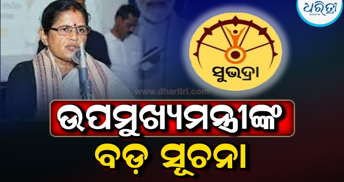ପୂର୍ବରୁ ଉପମୁଖ୍ୟମନ୍ତ୍ରୀ ଦେଇଥିବା ସୂଚନା ଅନୁସାରେ, ୧୭ ତାରିଖ ପରେ ଆବେଦନ କରୁଥିବା ମହିଳାମାନଙ୍କୁ ସୁଭଦ୍ରା ଯୋଜନାର ଲାଭ ନିଶ୍ଚିତ ଭାବେ ମିଳିବ । ସୁଭଦ୍ରା ଟଙ୍କା ପାଇଁ ଆବେଦନ କରିବାକ ର୍ନିଦ୍ଧିଷ୍ଟ କୌଣସି ସମୟ ସୀମା ନାହିଁ । ଜଣେ ଚାହିଁଲେ ବର୍ତ୍ତମାନ ମଧ୍ୟ ରେଜିଷ୍ଟ୍ରେସନ କରିପାରିବ।ଏଥିରୁ ବଞ୍ଚିତ ହେବେ ନାହିଁ ବୋଲି ଉପମୁଖ୍ୟମନ୍ତ୍ରୀ ସ୍ପଷ୍ଟ କରିଥିଲେ ।