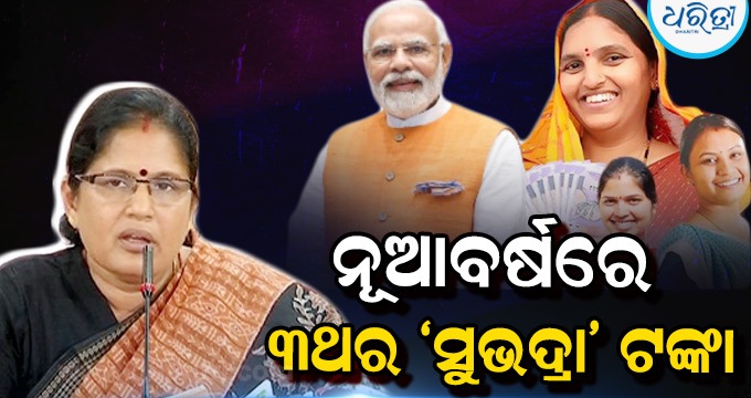 ଭୁବନେଶ୍ୱର,୩୦।୧୨:ସୁଭଦ୍ରା ଯୋଜନାକୁ ନେଇ ସୋମବାର ବଡ଼ ଘୋଷଣା କରିଛନ୍ତି ଉପମୁଖ୍ୟମନ୍ତ୍ରୀ ପଭାତୀ ପରିଡା। ୨୦୨୫ରେ ମହିଳାଙ୍କୁ ୩ଥର ସୁଭଦ୍ରା ଟଙ୍କା ମିଳିବ ବୋଲି ଉପମୁଖ୍ୟମନ୍ତ୍ରୀ କହିଛନ୍ତି।