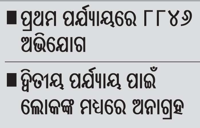 ପ୍ରଥମ ପର୍ଯ୍ୟାୟରେ ବ୍ଲକର ୨୬ଟି ପଞ୍ଚାୟତରୁ ୮୮୪୬ ଅଭିଯୋଗ ଆସିଥିଲା। ସେଥିମଧ୍ୟରୁ ଆବାସ ଯୋଜନା, ରାଶନ କାର୍ଡ, ଭତ୍ତା, ନିର୍ମାଣ ଶ୍ରମିକଙ୍କ ପାଇଁ ଯୋଜନାରୁ ବଞ୍ଚତ୍ତ ଥିବା ହିତାଧିକାରୀମାନେ ସେମାନଙ୍କ ଅଭିଯୋଗ ନିଜ ପଞ୍ଚାୟତ କାର୍ଯ୍ୟାଳୟରେ ଅନୁଷ୍ଠିତ ପଲ୍ଲୀରେ ପ୍ରଶାସନ କାର୍ଯ୍ୟକ୍ରମରେ ଉପସ୍ଥିତ ପ୍ରଶାସନିକ ଅଧିକାରୀଙ୍କୁ ଭେଟି ଅଭିଯୋଗମାନ କରିଥିଲେ। ଏଥିରେ ବିଡିଓ, ତହସିଲଦାରଙ୍କଠାରୁ ଆରମ୍ଭ କରି ବିଭିନ୍ନ ବିଭାଗର ସମ୍ପ୍ରସାରଣ ଅଧିକାରୀ ଉପସ୍ଥିତ ରହି ଅଭିଯୋଗଗୁଡ଼ିକୁ ଗ୍ରହଣ କରୁଥିଲେ। ସେହିପରି ୨୦୨୨ ଡିସେମ୍ବରରୁ ଦ୍ୱିତୀୟ ପର୍ଯ୍ୟାୟରେ ପଲ୍ଲୀରେ ପ୍ରଶାସନ କାର୍ଯ୍ୟକ୍ରମ ଆରମ୍ଭ ହୋଇଥିଲା। ଏପ୍ରିଲ ୩ୟ ସୋମବାର ସୁଦ୍ଧା ବ୍ଲକ ଅଧୀନ ୨୬ଟି ପଞ୍ଚାୟତ ମଧ୍ୟରୁ ୧୮ଟିରେ ଏହି କାର୍ଯ୍ୟକ୍ରମ ହୋଇଯାଇଛି। ମାତ୍ର ଦ୍ୱିତୀୟ ପର୍ଯ୍ୟାୟ ଆରମ୍ଭରୁ ଏହି କାର୍ଯ୍ୟକ୍ରମରେ ସମ୍ପୃକ୍ତ ପଞ୍ଚାୟତର ସାଧାରଣ ଲୋକଙ୍କ ମଧ୍ୟରେ ଅନାଗ୍ରହ ଦେଖିବାକୁ ମିଳୁଛି। ଏଥିସହ ବହୁ ପଞ୍ଚାୟତରେ ଦୁଇଅଙ୍କ ମଧ୍ୟରେ ଅଭିଯୋଗଗୁଡ଼ିକ ସୀମିତ ରହୁଛି। ପ୍ରଥମ ପର୍ଯ୍ୟାୟରେ ବିଭିନ୍ନ ପଞ୍ଚାୟତରେ ଅନୁଷ୍ଠିତ ଏହି କାର୍ଯ୍ୟକ୍ରମରେ ବିଭିନ୍ନ ବିଭାଗର ୨୦ରୁ ଊର୍ଦ୍ଧ୍ୱ ଷ୍ଟଲ ପଡ଼ିବା ସହ ବିଭାଗୀୟ ଅଧିକାରୀ କାର୍ଯ୍ୟକ୍ରମରେ ଉପସ୍ଥିତ ରହି ଲୋକଙ୍କ ଅଭିଯୋଗ ଗ୍ରହଣ କରୁଥିଲେ। ମାତ୍ର ଦ୍ୱିତୀୟ ପର୍ଯ୍ୟାୟରେ ଏହି ସଂଖ୍ୟା ୧୦କୁ କମିଯିବା ସହ ଏହି କାର୍ଯ୍ୟକ୍ରମରେ ବହୁ ଅଧିକାରୀ ଅନୁପସ୍ଥିତ ରହୁଛନ୍ତି।