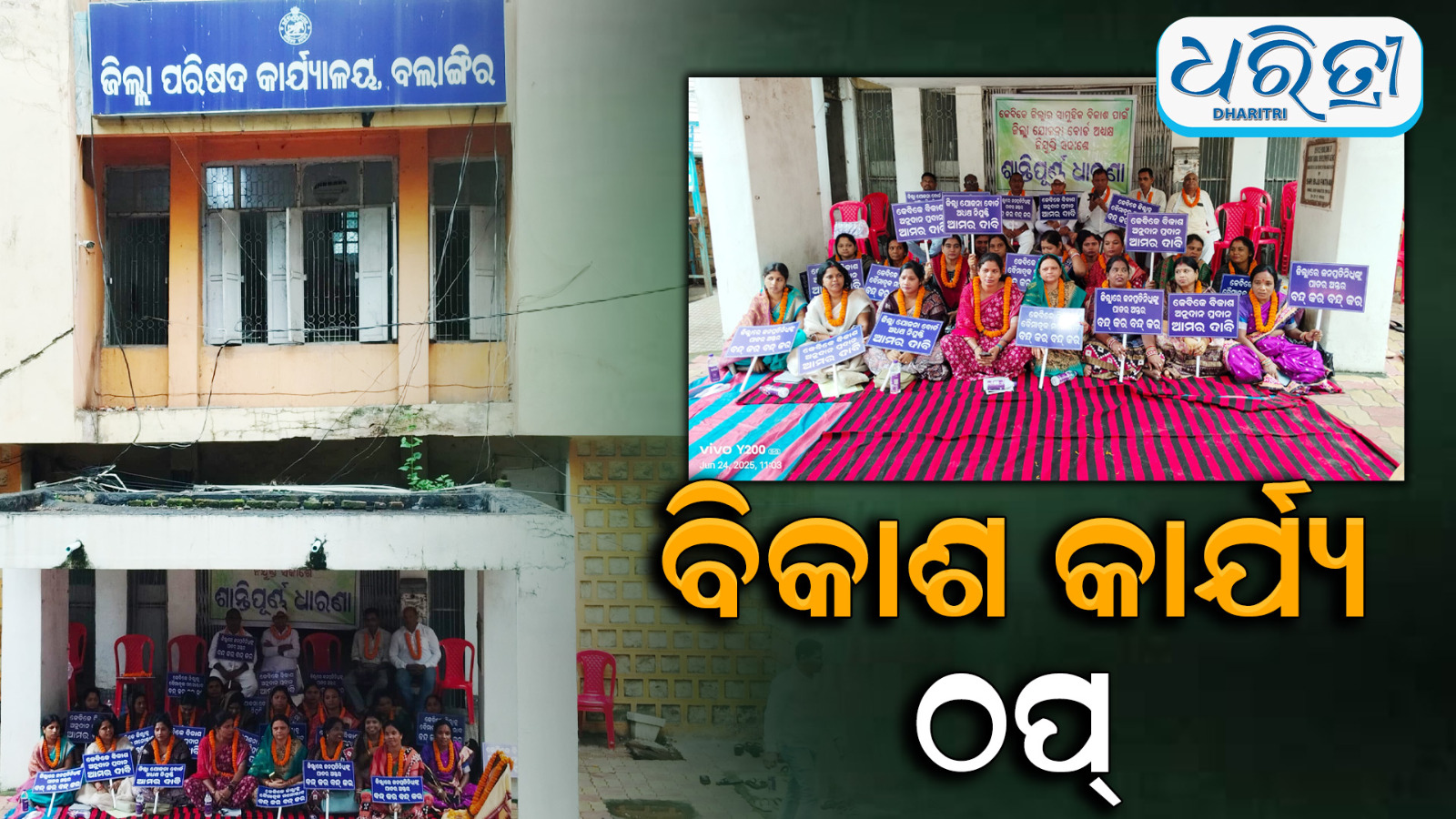 ବଲାଙ୍ଗୀର, ୨୪।୬(ସୁନିଲ କୁମାର ମହାନ୍ତି): ବଲାଙ୍ଗୀର ଜିଲା ପରିଷଦ ସଦସ୍ୟା ସଦସ୍ୟମାନେ ମଙ୍ଗଳବାର ସ୍ଥାନୀୟ ଜିଲା ପରିଷଦ କାର୍ଯ୍ୟାଳୟ ସମ୍ମୁଖରେ ଧାରଣାରେ ବସିଛନ୍ତି। ଜିଲା ପରିଷଦ ସଭାପତି ଦେବକୀ