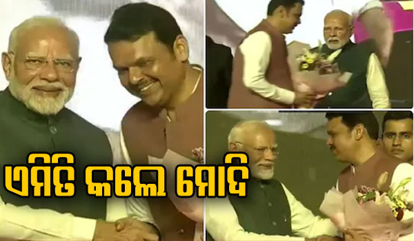 ଏହା ପରେ ଦେବେନ୍ଦ୍ର ଫଡ୍ନବିସ ପ୍ରୋଟୋକଲ ଅନୁଯାୟୀ ଆଗକୁ ବଢିଥିଲେ, ସେତେବେଳେ ମଞ୍ଚ ଉପରେ ଠିଆ ହୋଇଥିବା ପ୍ରଧାନମନ୍ତ୍ରୀ ନରେନ୍ଦ୍ର ମୋଦି ତାଙ୍କୁ ବାଧା ଦେଇଥିଲେ, ଏହା ପରେ ସେ ପ୍ରଧାନମନ୍ତ୍ରୀ ମୋଦିଙ୍କ ସହ ହାତ ମିଳାଇଥିଲେ। ପ୍ରଧାନମନ୍ତ୍ରୀ ମୋଦି ତାଙ୍କୁ ଅଭିନନ୍ଦନ ଜଣାଇ ତାଙ୍କୁ ଆଶୀର୍ବାଦ ଦେଇଥିଲେ, ତା’ପରେ ଫଡ୍ନବିସ ଆଗକୁ ବଢିଥିଲେ।