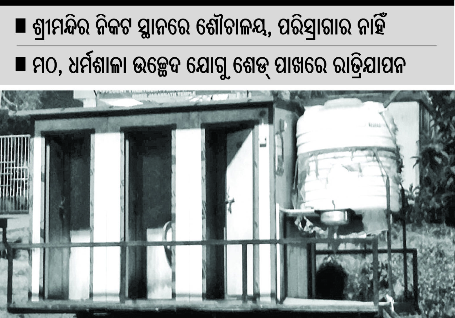 ପୁରୀ ଅଫିସ, ୫ା୧୨:ବିଶ୍ୱ ମାନଚିତ୍ରରେ ପୁରୀ ଏକ ପ୍ରସିଦ୍ଧ ପର୍ଯ୍ୟଟନ ଓ ଆଧ୍ୟାତ୍ମିକ ସହର ଭାବେ ପରିଚିତ। ରାଜ୍ୟ ସରକାରଙ୍କ ପକ୍ଷରୁ ପୁରୀକୁ ବିଶ୍ୱସ୍ତରୀୟ କରିବା ପାଇଁ ପ୍ରକ୍ରିୟା ଜାରି ରହିଛି। ଏଠାକୁ ଦେଶ ବିଦେଶରୁ ଲକ୍ଷ ଲକ୍ଷ ଶ୍ରଦ୍ଧାଳୁ ଓ ପର୍ଯ୍ୟଟକ ଛୁଟି ଆସୁଛନ୍ତି। ତେବେ ମହାପ୍ରଭୁଙ୍କ ଦର୍ଶନ ପାଇଁ ଆସୁଥିବା ଶ୍ରଦ୍ଧାଳୁମାନେ ମୌଳିକ ସୁବିଧାରୁ ବଞ୍ଚିତ ହେଉଥିବା ଅଭିଯୋଗ ହେଉଛି। ଶ୍ରୀମନ୍ଦିର ନିକଟସ୍ଥ ଅଞ୍ଚଳରେ ଶ୍ରଦ୍ଧାଳୁଙ୍କ ଲାଗି ପର୍ଯ୍ୟାପ୍ତ ପରିମାଣର ଶୌଚାଳୟ ଓ ପରିଶ୍ରାଗାର ନାହିଁ। ଏଥିଯୋଗୁ ସେମାନେ ହଇରାଣ ହେଉଛନ୍ତି। ବିଶେଷ କରି ମହିଳା ଓ ଛୋଟ ପିଲାଙ୍କୁ ଏଭଳି ସମସ୍ୟାର ସମ୍ମୁଖୀନ ହେବାକୁ ପଡୁଛି। ପୂର୍ବରୁ ଶ୍ରୀମନ୍ଦିର ଉତ୍ତର-ପୂର୍ବ କୋଣ ଦୋଳବେଦି କୋଣ ନିକଟରେ ଶ୍ରଦ୍ଧାଳୁଙ୍କ ଲାଗି ଶୌଚାଳୟ ଓ ପରିଶ୍ରାଗାର ରହିଥିଲା। ତେଣୁ ଶ୍ରଦ୍ଧାଳୁଙ୍କର ସମସ୍ୟା କିଛି ମାତ୍ରାରେ ଦୂର ହୋଇ ପାରୁଥିଲା। ମାତ୍ର ଶ୍ରୀମନ୍ଦିର ପରିକ୍ରମା ମାର୍ଗର କାର୍ଯ୍ୟ ଉକ୍ତ ଅଞ୍ଚଳରେ ଜାରି ରହିଥିବାରୁ ସେଠାରେ ଥିବା ଶୌଚାଳୟ ଓ ପରିଶ୍ରାଗାରକୁ ପ୍ରଶାସନ ପକ୍ଷରୁ ଭାଙ୍ଗି ଦିଆଯାଇ ନିର୍ମାଣ କାର୍ଯ୍ୟ ଚାଲିଛି। ସେହିପରି ପୂର୍ବରୁ ମନ୍ଦିର ପାଖରେ ଅସ୍ଥାୟୀ ବା ଭ୍ରାମ୍ୟମାଣ ଶୌଚାଳୟ ବ୍ୟବସ୍ଥା କରାଯାଇଥିଲା। ମାତ୍ର ଏବେ ଉକ୍ତ ଅସ୍ଥାୟୀ ଶୌଚାଳୟ ଦେଖିବାକୁ ମିଳୁନାହିଁ। ଦକ୍ଷିଣ ଦ୍ୱାର ନିକଟରେ ଥିବା ଏକ ଭ୍ରାମ୍ୟମାଣ ଶୌଚାଳୟ ବ୍ୟବହାର ଅନୁପୋଯୋଗୀ ହୋଇପଡ଼ିଛି। ଫଳରେ ଶ୍ରଦ୍ଧାଳୁମାନେ ସମସ୍ୟାର ସମ୍ମୁଖୀନ ହେଉଛନ୍ତି।