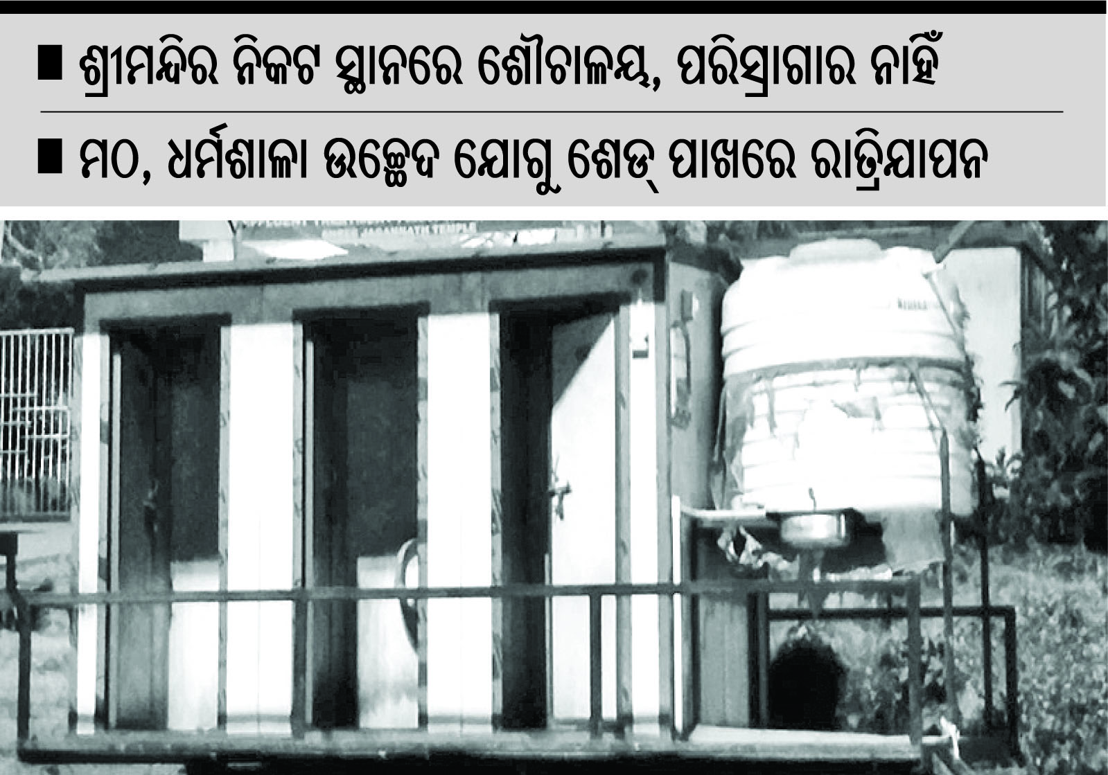 ଅପରପକ୍ଷେ ଶ୍ରୀମନ୍ଦିର ସିଂହଦ୍ୱାର ନିକଟରେ ପ୍ରଶାସନ ପକ୍ଷରୁ କରାଯାଇଥିବା ଅସ୍ଥାୟୀ ଶେଡ୍ର ବ୍ୟାରିକେଡ ଉପରେ ଶ୍ରଦ୍ଧାଳୁମାନେ ସେମାନଙ୍କ ଲୁଗାପଟା ଶୁଖାଉଥିବା ସହ ରାସ୍ତାରେ ଜିନିଷପତ୍ର ଧରି ବସି ରହୁଥିବା ଦେଖିବାକୁ ମିଳୁଛି। ଏପରିକି ଅନେକ ଶ୍ରଦ୍ଧାଳୁ ବ୍ୟାରିକେଡ୍ ନିକଟରେ ରାତ୍ରି ଯାପନ କରୁଛନ୍ତି। ଏହାର ମୁଖ୍ୟ କାରଣ ହେଉଛି ମଠ ଓ ଧର୍ମଶାଳାର ଅଭାବ। ପୂର୍ବରୁ ଆର୍ଥିକ ଦୁର୍ବଳ ଶ୍ରେଣୀର ଶ୍ରଦ୍ଧାଳୁ ପୁରୀ ଆସିଲେ କମ୍ ଅର୍ଥ ଦେଇ ଶ୍ରୀମନ୍ଦିର ଚାରିପଟେ ଥିବା ମଠ କିମ୍ବା ଧର୍ମଶାଳାରେ ରାତ୍ରୀଯାପନ କରିବା ସହ ମହାପ୍ରଭୁଙ୍କ ଦର୍ଶନ ସାରି ଫେରୁଥିଲେ। ମାତ୍ର ବର୍ତ୍ତମାନ ମଠ ଓ ଧର୍ମଶାଳା ଉଚ୍ଛେଦ ହୋଇସାରିଥିବାରୁ ଶ୍ରଦ୍ଧାଳୁଙ୍କ ପକ୍ଷେ ଅଧିକ ଅର୍ଥ ଦେଇ ଲଜ୍, ହୋଟେଲ ଓ ଭକ୍ତ ନିବାସରେ ରହିବା ସମ୍ଭବପର ହେଉନାହିଁ। ସେହିପରି ଯେଉଁ କେତୋଟି ଧର୍ମଶାଳା ବର୍ତ୍ତମାନ ପୁରୀରେ ଅଛି ତାହ ସମୁଦ୍ରକୁ ଶଙ୍ଖେ ସଦୃଶ। ଏ ନେଇ ପୁରୀ ସହର ବାସିନ୍ଦା ବିକାଶ କୁମାର ପ୍ରଧାନ କହିଛନ୍ତି, ଶ୍ରୀକ୍ଷେତ୍ର ହେଉଛି ରାଜ୍ୟର ଧାର୍ମିକ ରାଜଧାନୀ ସହ ବିଶ୍ୱର ଏକ ପ୍ରମୁଖ ପର୍ଯ୍ୟଟନସ୍ଥଳୀ। ପ୍ରତିଦିନ ଦେଶ ବିଦେଶରୁ ଲକ୍ଷ ଲକ୍ଷ ଶ୍ରଦ୍ଧାଳୁ ମହାପ୍ରଭୁଙ୍କ ଦର୍ଶନ ଓ ବେଳାଭୂମି ବୁଲିବା ସହ ନିକଟସ୍ଥ ଅନ୍ୟାନ୍ୟ ସ୍ଥାନ ପରିଭ୍ରମଣ ଉଦ୍ଦେଶ୍ୟରେ ଆସିଥାନ୍ତି। ମାତ୍ର ପ୍ରଶାସନର ବେପରୁଆ ମନୋଭାବ ଯୋଗୁ ସେମାନେ ବିଭିନ୍ନ ସମସ୍ୟାର ସମ୍ମୁଖୀନ ହେଉଥିବା ଦେଖିବାକୁ ମିଳୁଛି। ଅନେକ ସମୟରେ ପରିଶ୍ରାଗାର ଖୋଜିଲେ ପାଉନାହାନ୍ତି। ତେଣୁ ଏଣେତେଣେ ପରିଶ୍ରା କରିବାକୁ ବାଧ୍ୟ ହେଉଛନ୍ତି। ସେହିପରି ସୁଲଭ ମୂଲ୍ୟରେ ରହିବା ପାଇଁ ଧର୍ମଶାଳା ନ ଥିବାରୁ ଅନେକ ଭକ୍ତ ମନ୍ଦିର ନିକଟରେ ବସିରହୁଥିବା ଦେଖିବାକୁ ମିଳୁଛି। ଏସବୁ ସସମ୍ୟା ପ୍ରତି ପ୍ରଶାସନ ଦୃଷ୍ଟି ଦେବା ଆବଶ୍ୟକ। ସମ୍ପ୍ରତି ପର୍ଯ୍ୟଟନ ଋତୁରେ ପୁରୀକୁ ଶ୍ରଦ୍ଧାଳୁ ଓ ପର୍ଯ୍ୟଟକଙ୍କ ସଂଖ୍ୟା ବୃଦ୍ଧି ପାଇବ। ତେଣୁ ଶ୍ରୀମନ୍ଦିର ଚାରିପଟେ ଚାଲିଥିବା ଉନ୍ନୟନ କାର୍ଯ୍ୟ ସରିବା ପର୍ଯ୍ୟନ୍ତ ପ୍ରଶାସନ ପକ୍ଷରୁ ଅସ୍ଥାୟୀ ବା ଭ୍ରାମ୍ୟମାଣ ଶୌଚାଳୟ ବ୍ୟବସ୍ଥା କରାଯିବା ଆବଶ୍ୟକ। ତେବେ ଏନେଇ ପୌରସଂସ୍ଥା କାର୍ଯ୍ୟନିର୍ବାହୀ ଅଧିକାରୀ ସରୋଜ କୁମାର ସ୍ବାଇଁ କହିଛନ୍ତି, ପ୍ରଶାସନ ପକ୍ଷରୁ ଶ୍ରଦ୍ଧାଳୁଙ୍କ ଶୃଙ୍ଖଳିତ ଦର୍ଶନ ଓ ସୁବିଧା ପାଇଁ ସମସ୍ତ ପ୍ରକାର ବ୍ୟବସ୍ଥା ଗ୍ରହଣ କରାଯାଉଛି। ଶ୍ରୀମନ୍ଦିର ଚପଲ ଷ୍ଟାଣ୍ଡ ନିକଟରେ ଶ୍ରଦ୍ଧାଳୁଙ୍କ ଲାଗି ଶୌଚାଳୟ ରହିଛି। ସେଠାରେ ସମସ୍ତ ପ୍ରକାର ସୁବିଧା କରାଯାଇଛି। ବର୍ତ୍ତମାନ ପ୍ରକଳ୍ପ କାର୍ଯ୍ୟ ଚାଲିଛି। କାର୍ଯ୍ୟ ସରିବା ପରେ ଶ୍ରଦ୍ଧାଳୁମାନେ ଅଧିକ ସୁବିଧା ପାଇପାରିବେ। ପୂର୍ବରୁ ଶ୍ରୀମନ୍ଦିର ପ୍ରଶାସନ ପକ୍ଷରୁ ଭ୍ରାମ୍ୟମାଣ ଶୌଚାଳୟ ରଖାଯାଇଥିଲା ବୋଲି ସ୍ବାଇଁ ପ୍ରକାଶ କରିଛନ୍ତି।