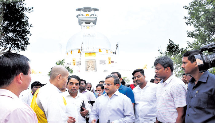 ଭୁବନେଶ୍ୱର,୨୪।୧୦(ବ୍ୟୁରୋ):ଦେଶର ଅନ୍ୟତମ ବୌଦ୍ଧ ଐତିହ୍ୟ ଶାନ୍ତିସ୍ତୂପ ଧଉଳିକୁ ଆସନ୍ତା ୨୮ ତାରିଖରେ ୫୦ବର୍ଷ ପୂରୁଛି। ତେଣୁ ଶାନ୍ତିସ୍ତୂପର ସୁବର୍ଣ୍ଣ ଜୟନ୍ତୀ ପାଳନ ପାଇଁ ରାଜ୍ୟ ସରକାରଙ୍କ ପକ୍ଷରୁ ବ୍ୟାପକ ପ୍ରସ୍ତୁତି ଚାଲିଛି। ଉତ୍ସବକୁ ମୁଖ୍ୟମନ୍ତ୍ରୀ ନବୀନ ପଟ୍ଟନାୟକ ଉଦ୍‌ଘାଟନ କରିବାର କାର୍ଯ୍ୟକ୍ରମ ରହିଥିବାବେଳେ ଏଥିରେ ବିଭିନ୍ନ ଦେଶରୁ ପ୍ରାୟ ୧୫୦ ବୌଦ୍ଧ ସନ୍ନ୍ୟାସୀ ଯୋଗଦେବେ। ଉଦ୍‌ଘାଟନୀ ଦିନ ଭୁବନେଶ୍ୱରରୁ ଧଉଳି ପର୍ଯ୍ୟନ୍ତ ଏକ ଶାନ୍ତି ଶୋଭାଯାତ୍ରା ଆୟୋଜିତ ହେବା ସହ ପୂଜା ଆରମ୍ଭ ହେବ। ତେଣୁ ରବିବାର ଭିନ୍ନକ୍ଷମ ଓ ସଶକ୍ତୀକରଣ ମନ୍ତ୍ରୀ ଅଶୋକ ଚନ୍ଦ୍ର ପଣ୍ଡା, ମୁଖ୍ୟ ଶାସନ ସଚିବ ସୁରେଶ ଚନ୍ଦ୍ର ମହାପାତ୍ର, ଓଡ଼ିଆ ଭାଷା, ସାହିତ୍ୟ ଓ ସଂସ୍କୃତି ବିଭାଗର ଅତିରିକ୍ତ ମୁଖ୍ୟ ଶାସନ ସଚିବ ମଧୁସୂଦନ ପାଢ଼ୀ ପରିଦର୍ଶରେ ଯାଇ ପ୍ରସ୍ତୁତି କାର୍ଯ୍ୟର ସମୀକ୍ଷା କରିଥିଲେ। ୨ଦିନ ମଧ୍ୟରେ କାର୍ଯ୍ୟ ସାରିବାକୁ ମୁଖ୍ୟ ଶାସନ ସଚିବ ମହାପାତ୍ର ନିର୍ଦ୍ଦେଶ ଦେଇଛନ୍ତି। ଲାଇଟ୍‌, ସାଉଣ୍ଡ୍‌ ବ୍ୟବସ୍ଥା ସହ ସମସ୍ତ କାର୍ଯ୍ୟକ୍ରମ ନିର୍ଦ୍ଧାରିତ ସମୟ ପୂର୍ବରୁ କିଭଳି ସରିବ ସେ ନେଇ ଗୁରୁତ୍ୱ ଦିଆଯାଇଛି। ବିଧାୟକ ପାଣ୍ଠିରୁ ୫୦ ଲକ୍ଷ ଟଙ୍କା ଓ ମୁଖ୍ୟମନ୍ତ୍ରୀଙ୍କ ପାଣ୍ଠିରୁ ୧ କୋଟି ଟଙ୍କା ଖର୍ଚ୍ଚ ହେଉଥିବା ନେଇ ମନ୍ତ୍ରୀ ପଣ୍ଡା ସୂଚନା ଦେଇଛନ୍ତି। ଏହି ସମୟରେ ସ୍ଥାନୀୟ ସରପଞ୍ଚ ଚନ୍ଦନ ମଲିକ, ଭଗବାନ ସାହୁ, ସୁବାସ ସୁନ୍ଦରାୟ ପ୍ରମୁଖ ଉପସ୍ଥିତ ଥିଲେ।
