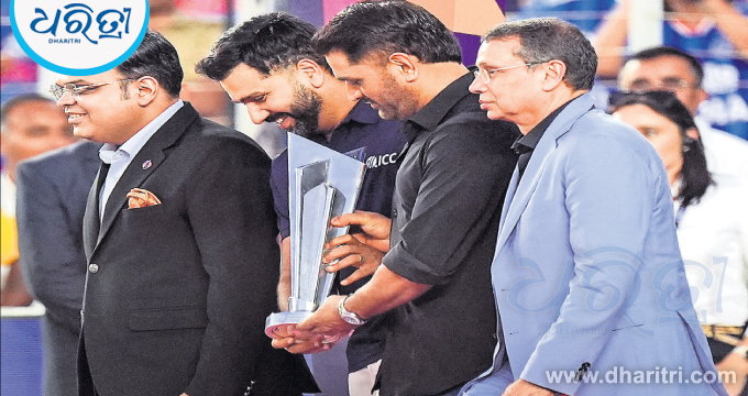 ଅହମଦାବାଦ, ୮।୩: ଭାରତ ଓ ନ୍ୟୁଜିଲାଣ୍ଡ ମଧ୍ୟରେ ଟି୨୦ ବିଶ୍ୱକପ୍ର ଫାଇନାଲ ମ୍ୟାଚ୍ ଖେଳାଯିବା ପୂର୍ବରୁ ଭାରତର ଦୁଇ ପୂର୍ବତନ ଅଧିନାୟକ ରୋହିତ ଶର୍ମା ଓ ମହେନ୍ଦ୍ର ସିଂ ଧୋନୀ ବିଶ୍ୱକପ୍ ଟ୍ରଫି ସହ ପ୍ରଥମେ ଗ୍ରାଉଣ୍ଡରେ ପ୍ରବେଶ କରିଥିଲେ। ତାଙ୍କ ସହିତ ଏହି ଅବସରରେ ଅନ୍ତର୍ଜାତୀୟ କ୍ରିକେଟ ପରିଷଦ (ଆଇସିସି) ମୁଖ୍ୟ ଜୟ ଶାହା ଓ ଚଳିତ ବିଶ୍ୱକପ୍ର ମୁଖ୍ୟ ପ୍ରସାରଣକାରୀ ସଂସ୍ଥା ଜିଓଷ୍ଟାର ଭାଇସ୍ ଚେୟାରମ୍ୟାନ ଉଦୟ ଶଙ୍କର ଉପସ୍ଥିତ ଥିଲେ। ଉଲ୍ଲେଖଯୋଗ୍ୟ, ୨୦୦୭ରେ ଧୋନୀ ଓ ୨୦୨୪ରେ ରୋହିତଙ୍କ ନେତୃତ୍ୱରେ ଭାରତ ଟି୨୦ ବିଶ୍ୱକପ୍ ଜିତିଥିଲା।