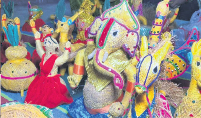 ଛତ୍ରପୁର,୨୪।୯(ସନ୍ତୋଷ ପାଢ଼ୀ):ଭଳିକି ଭଳି ସୁନ୍ଦର ସୁନ୍ଦର କଣ୍ଢେଇ। ଗଣେଶ, ଶ୍ରୀଜଗନ୍ନାଥ, ବଳଭଦ୍ର, ସୁଭଦ୍ରା, ଏମିତି ଅନେକ ମୂର୍ତ୍ତି ସହ ପିଲାଙ୍କ ଖେଳଣା ପାଇଁ ଶଗଡ଼, ରାଜାରାଣୀ, ଘୋଡା, ମାଛ, ଘରଚଟିଆ ବସା, ଘର ଓ ଅଫିସର ସୌନ୍ଦର୍ଯ୍ୟକୁ ଦୁଇ ଗୁଣିତ କରିବା ପାଇଁ ଦିବ୍ୟଙ୍ଗ ମହିଳାମାନେ ନଡ଼ିଆ କତାରେ ତିଆରି କରୁଛନ୍ତି ସୁନ୍ଦର ମନଲୋଭା କଣ୍ଢେଇ। ଗଞ୍ଜାମ ଜିଲା ବଳରାମପୁରର ୭ଜଣ ଦିବ୍ୟାଙ୍ଗ ମହିଳା ମିଶି ଏହିସବୁ କାର୍ଯ୍ୟ କରୁଛନ୍ତି। ପୂର୍ବରୁ ନିଜକୁ ଅକ୍ଷମ ଭାବି ଘରେ ବସି ରହୁଥିଲେ। ଦିନେ ଗ୍ରାମର ଜଣେ ଶିକ୍ଷିତ ମା’ ଆସି ସେମାନଙ୍କୁ ଏକତ୍ରିତ କରି କିଛି ଟଙ୍କା ରୋଜଗାର କରିବାର ପନ୍ଥା ଦେଖାଇ ମନରେ ଆସା ସଞ୍ଚାର କରିଥିଲେ। ଏବଂ କିଛି ଦିନ ପରେ ଜଣେ କଣ୍ଢେଇ କାରିଗରଙ୍କୁ ଡାକି ଏକ ସପ୍ତାହ ଧରି ଶିକ୍ଷା ଗ୍ରହଣ କରିଥିଲେ। ପରେ ନଡ଼ିଆ କତା ମଗାଇ ସେଥିରେ ରଙ୍ଗ ବେରଙ୍ଗ ସୂତା ସହ ଅନେକ ପ୍ରକାର ସାମଗ୍ରୀ ମିଶାଇ ଅତି ସୁନ୍ଦର ସୁନ୍ଦର ମୂର୍ତ୍ତି କଣ୍ଢେଇ, ଘର ସାମଗ୍ରୀ, ଏମିତି ଅନେକ ପ୍ରକାର ଘରକୁ ସୁନ୍ଦର ଲାଗିବା ସହ ପିଲାଙ୍କ ଖେଳନା ଆଦି ପ୍ରସ୍ତୁତ କରି ଏବେ ରୋଜଗାରକ୍ଷମ ହୋଇପାରିଛନ୍ତି । ଏଭଳି କଣ୍ଢେଇ ଲୋକଙ୍କୁ ଅଧିକ ପସନ୍ଦ ଆସୁଥିବା ହେତୁ କଣ୍ଢେଇର ତିଆରି ମୂଲ୍ୟ ଠାରୁ ଅଧିକ ଲାଭ ହୋଇଥିବା କହିଛନ୍ତି। ଏଭଳି କାମ କରି ନିଜେ ସ୍ବାବଲମ୍ବୀ ହେବାସହ ଘରର ଆର୍ଥିକ ସ୍ଥିତିରେ ମଧ୍ୟ ସହଯୋଗ କରିପାରୁଛନ୍ତି । ଏହି କଣ୍ଢେଇ ତିଆରି କଳାକୁ ଆହୁରି ଆଗକୁ ନେବାକୁ ଇଛା ଥିବା ବେଳେ ସରକାରଙ୍କ ସହଯୋଗ ଲୋଢିଛନ୍ତି।