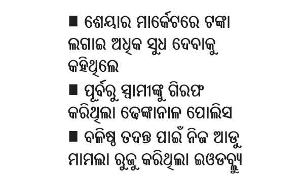 ସୂଚନା ଅନୁଯାୟୀ, ଅଭିଯୁକ୍ତ ସତ୍ୟରଞ୍ଜନ ଭୁବନେଶ୍ୱର ପଟିଆସ୍ଥିତ ଡିଏଲ୍ଏଫ୍ ବିଲ୍ଡିଂରେ ‘ପର୍ପଲ କ୍ୱାଲ୍ଭସ୍ ଫାଇନାନ୍ସିଆଲ ସର୍ଭିସେସ୍ ପ୍ରାଇଭେଟ ଲିମିଟେଡ’ରେ ଏକ ଚିଟ୍ଫଣ୍ଡ ସଂସ୍ଥା ଖୋଲିଥିଲେ। ସେ ଓ ତାଙ୍କ ସ୍ତ୍ରୀ ଏହାର ନିର୍ଦ୍ଦେଶକ ଥିଲେ। ଏହି ସଂସ୍ଥା ଦ୍ୱାରା ଉଭୟେ କୋଟି କୋଟି ଟଙ୍କା ହଡ଼ପ କରିବାକୁ ଯୋଜନା କରିଥିଲେ। ତାଙ୍କ କମ୍ପାନୀରେ ଟଙ୍କା ଜମା କଲେ ଏହାକୁ ଶେୟାରରେ ଲଗାଇ ଅଧିକ ସୁଧ ଦେବାକୁ ଲୋକଙ୍କୁ ପ୍ରତିଶ୍ରୁତି ଦେଇଥିଲେ। ଉକ୍ତ କଥାକୁ ବିଶ୍ୱାସ କରି ୨୦୧୮ରୁ ରାଜ୍ୟର ବିଭିନ୍ନ ଜିଲାର ୪୩ ଜଣ ନିବେଶକ ପ୍ରାୟ ୭ କୋଟି ଟଙ୍କା ତାଙ୍କ କମ୍ପାନୀରେ ନିବେଶ କରିଥିଲେ। ଏପରିକି ଜନସାଧାରଣଙ୍କ ଟଙ୍କା ନେବା ଓ ତାହାକୁ ଶେୟାର ମାର୍କେଟରେ ତାଙ୍କ କମ୍ପାନୀ ଦ୍ୱାରା ନିବେଶ କରିବାକୁ ସେମାନେ ‘ଆର୍ବିଆଇ’ ଓ ‘ସେବି’ ଠାରୁ ମଧ୍ୟ ଅନୁମତି ଆଣି ନ ଥିଲେ। ପ୍ରଥମେ ବିଶ୍ୱାସ ଜନ୍ମାଇବାକୁ ସେମାନେ କିଛି ପରିମାଣର ସୁଧ ଦେଇଥିଲେ। ହେଲେ ପରବର୍ତ୍ତୀସମୟରେ ନିବେଶକଙ୍କୁ ଆଉ ଟଙ୍କା ଦେଇ ନ ଥିଲେ। ନିବେଶକମାନେ ଟଙ୍କା ମାଗିବାରୁ ଧମକ ଦେବା ସହ ଆଉ ଧରାଛୁଆଁ ଦେଇ ନ ଥିଲେ। ଏନେଇ କିଛି ନିବେଶକ ଢେଙ୍କାନାଳ ଟାଉନ ଥାନାରେ ସ୍ବାମୀ ଓ ସ୍ତ୍ରୀଙ୍କ ନାମରେ ଅଭିଯୋଗ କରିଥିଲେ। ହେଲେ ଟାଉନ ଥାନା ପୋଲିସ ସେତେବେଳେ କେବଳ ସ୍ବାମୀ ସତ୍ୟରଞ୍ଜନଙ୍କୁ ଗିରଫ କରିଥିବାବେଳେ ପଲ୍ଲବୀଙ୍କୁ ଥାନାରେ ପଚରାଉଚରା କରି ଛାଡ଼ି ଦେଇଥିଲା।