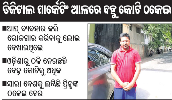 ଭୁବନେଶ୍ୱର, ୨୧।୫(ବ୍ୟୁରୋ): ଡିଜିଟାଲ୍‌ ମାର୍କେଟିଂ ଆଳରେ ଦେଶର ଆଉଏକ ବଡ଼ଧରଣର ଠକେଇ ଘଟଣା ଏବେ ସାମ୍ନାକୁ ଆସିଛି। ଆପ୍‌ ବ୍ୟବହାର କରିବା ସହ ଘରେ ବସି ରୋଜଗାର ଲୋଭ ଦେଖାଇ ସାରା ଦେଶରୁ ବହୁ କୋଟି ଲୁଟି ନେଇଛନ୍ତି ଠକ। କେବଳ ଓଡ଼ିଶାରୁ ଦେଢ଼ କୋଟିରୁ ଅଧିକ ଟଙ୍କା ଠକେଇ ହୋଇଥିବା ଅଭିଯୋଗ ହୋଇଛି। ଏହି ଠକେଇ କରିଥିବା ‘ଏମ୍‌/ଏସ୍‌ ଡିଜିଟାଲ ରିଭୋଲ୍ୟୁଶନ୍‌ ଟେକ୍ନୋଲୋଜିସ୍‌ ଲିମିଟେଡ୍‌’ କମ୍ପାନୀର ନିର୍ଦ୍ଦେଶକଙ୍କୁ ଶେଷରେ ଉତ୍ତରପ୍ରଦେଶର ମଥୁରାରୁ ଗିରଫ କରିଛି କ୍ରାଇମବ୍ରାଞ୍ଚର ଅର୍ଥନୈତିକ ଅପରାଧ ଶାଖା (ଇଓଡବ୍ଲ୍ୟୁ)। ସେ ହେଲେ ବିହାର ମୁଜାଫରପୁର ଅଞ୍ଚଳର ପ୍ରିନ୍ସ କୁମାର। ଇଓଡବ୍ଲ୍ୟୁ ତାଙ୍କୁ ବୁଧବାର ଗିରଫ କରିବା ପରେ ମଥୁରା ସିଜେଏମ୍‌ କୋର୍ଟରେ ହାଜର କରିଥିଲା। କୋର୍ଟ ଟ୍ରାଞ୍ଜିଟ୍‌ ରିମାଣ୍ଡରେ ନେବାକୁ ଅନୁମତି ଦେବାପରେ ଇଓଡବ୍ଲ୍ୟୁ ପ୍ରିନ୍ସଙ୍କୁ ଓଡ଼ିଶା ଆଣୁଛି। ଅଭିଯୁକ୍ତ ପ୍ରିନ୍ସ ମହାରାଷ୍ଟ୍ର, ବିହାର, ଉତ୍ତରପ୍ରଦେଶ, ଦିଲ୍ଲୀ, ପଶ୍ଚିମବଙ୍ଗ, ଛତିଶଗଡ଼ ଆଦି ରାଜ୍ୟରେ ମଧ୍ୟ ଠକେଇ କରିଛନ୍ତି। ତେଣୁ ସେ ପହଞ୍ଚତ୍ବା ପରେ ତାଙ୍କୁ ଅଧିକ ଜେରା କରାଯିବ। ତାଙ୍କ ର଼୍ୟାକେଟ ସମ୍ପର୍କରେ ଅଧିକ ତଥ୍ୟ ମିଳିବା ସହ ଠକେଇ ଟଙ୍କା ପରିମାଣ ବଢ଼ିପାରେ ବୋଲି ଇଓଡବ୍ଲ୍ୟୁ ଆଶା ରଖିଛି।
