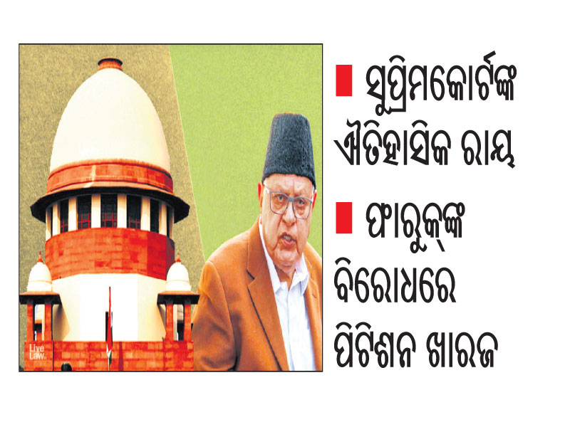 ଜମ୍ମୁ-କଶ୍ମୀରକୁ ସ୍ବତନ୍ତ୍ର ମାନ୍ୟତା ପ୍ରଦାନକାରୀ ସମ୍ବିଧାନର ଅନୁଚ୍ଛେଦ ୩୭୦କୁ କେନ୍ଦ୍ର ସରକାର ୨୦୧୯ ଅଗଷ୍ଟ ୫ରେ ହଟାଇଦେଇଥିଲେ। ୮୩ ବର୍ଷୀୟ ଶ୍ରୀନଗର ଏମ୍ପି ଫାରୁକ୍ ଅବ୍ଦୁଲ୍ଲା ଓ ତାଙ୍କ ପୁଅ ତଥା ନ୍ୟାଶନାଲ କନ୍ଫରେନ୍ସ (ଏନ୍ସି) ଉପାଧ୍ୟକ୍ଷ ଓମାର ଅବ୍ଦୁଲ୍ଲାଙ୍କ ସମେତ ଅନେକ ନେତାଙ୍କୁ ଗୃହବନ୍ଦୀ କରାଯାଇଥିଲା। ଫାରୁକ୍ ମୁକ୍ତ ହେବା ପରେ କେନ୍ଦ୍ରର ଏହି ପଦକ୍ଷେପ ବିରୋଧରେ ଚାଇନା ଓ ପାକିସ୍ତାନର ସହାୟତା ଲୋଡ଼ିଥିଲେ। ଫାରୁକ୍ଙ୍କ ମନ୍ତବ୍ୟକୁ ନେଇ ‘ବିଶ୍ୱ ଗୁରୁ ଇଣ୍ଡିଆ ଭିଜନ୍ ଅଫ୍ ସର୍ଦ୍ଦାର ପଟେଲ’ ସଙ୍ଗଠନ ସହ ଜଡ଼ିତ ରଜତ ଶର୍ମା ଓ ଡକ୍ଟର ନେହ ଶ୍ରୀବାସ୍ତବା ସୁପ୍ରିମକୋର୍ଟଙ୍କ ଦ୍ୱାରସ୍ଥ ହୋଇଥିଲେ। ଆବେଦନକାରୀ ଦ୍ୱୟ ନିଜ ଆବେଦନରେ ଉଲ୍ଲେଖ କରିଥିଲେ ଯେ ଫାରୁକ୍ ଜଣେ ଦେଶବିରୋଧୀ। ସେ କଶ୍ମୀରକୁ ଚାଇନା ହାତରେ ଟେକି ଦେବା ପାଇଁ ଉଦ୍ୟମ କରୁଥିବାରୁ ଦେଶଦ୍ରୋହ ମାମଲା ରୁଜୁ କରି ଭାରତୀୟ ଦଣ୍ଡ ସଂହିତା ଦଫା ୧୨୪-ଏରେ ଦଣ୍ଡିତ କରାଯାଉ। ଫାରୁକ୍ଙ୍କୁ ଯଦି ଜଣେ ଏମ୍ପି ଭାବେ ରହିବାକୁ ଦିଆଯାଏ ତେବେ ଭାରତରେ ଯେକୌଣସି ଦେଶବିରୋଧୀଙ୍କୁ ସ୍ବୀକୃତି ମିଳିବା ସହ ସମାନ। ଏପରି ହେଲେ ଦେଶର ଏକତା ପ୍ରତି ବିପଦ ସୃଷ୍ଟି ହେବ। ଜଷ୍ଟିସ୍ ସଞ୍ଜୟ କିଷନ କୌଲ ଓ ହେମନ୍ତ ଗୁପ୍ତାଙ୍କୁ ନେଇ ଗଠିତ ଖଣ୍ଡପୀଠ ଏହାର ଶୁଣାଣି ଶେଷ କରି ଆବେଦନକାରୀଙ୍କ ପିଟିଶନକୁ ଖାରଜ କରିଦେଇଛନ୍ତି। ଏହାସହ ଅନାବଶ୍ୟକ ଦାବି କରିଥିବାରୁ ୫୦, ୦୦୦ ଟଙ୍କା ଜରିମାନା ଦେବାକୁ ନିର୍ଦ୍ଦେଶ ଦେଇଛନ୍ତି।
