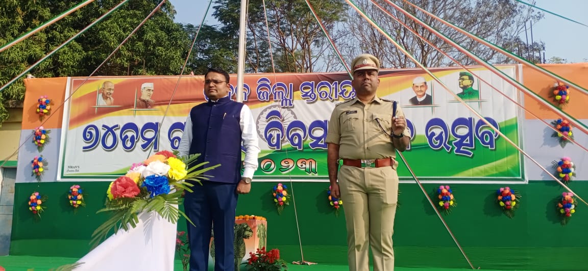 ଭଦ୍ରକ ଅଫିସ,୨୬।୧: ଭଦ୍ରକ କଲେଜ ପଡିଆରେ ଗୁରୁବାର ଜିଲାସ୍ତରୀୟ ୭୪ତମ ଗଣତନ୍ତ୍ର ଦିବସ ପାଳିତ ହୋଇଯାଇଛି l ୩୧ଟି ଟିମ ପରେଡରେ ଭାଗ ନେଇଥିଲେ l ମୁଖ୍ୟ ଅତିଥି ଭାବେ ଜିଲାପାଳ ସିଦ୍ଧେଶ୍ୱର ବଳିରାମ ବୋନ୍ଦର ଓ ଏସପି ବରୁଣ ଗୁଣ୍ଟୁପାଲି ଯୋଗ ଦେଇ ପରେଡରେ ଅଭିବାଦନ ଗ୍ରହଣ କରିଥିଲେ l ବିଭିନ୍ନ ବିଦ୍ୟାଳୟର ଛାତ୍ରୀଛାତ୍ରଙ୍କ ଦ୍ୱାରା ସାଂସ୍କୃତିକ କାର୍ଯ୍ୟକ୍ରମ ପରିବେଷଣ କରାଯାଇଥିଲା। ଶେଷରେ କୃତୀ ପ୍ରତିଯୋଗୀମାନଙ୍କୁ ମୁଖ୍ୟ ଅତିଥିଙ୍କ ଦ୍ୱାରା ଟ୍ରଫି ଓ ପ୍ରମାଣପତ୍ର ପ୍ରଦାନ କରାଯାଇଥିଲା।