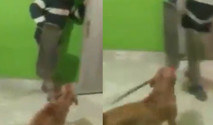 ଭିଡିଓରେ ଦେଖାଯାଇଛି, କୁକୁର ତାର ପାଟିରେ ଖଣ୍ଡାଟିକୁ ଜାବୁଡି ଧରିଛି। ପରେ ନିକଟରେ ଥିବା ଯୁବକଙ୍କୁ ଆକ୍ରମଣ କରୁଛି। ତେବେ ଆକ୍ରମଣରୁ ବର୍ତ୍ତି ପାଇଁ ଯୁବକ ଜଣକ ଏକ ସ୍କୋଟିଂ ବୋର୍ଡ ଧରି ଏହାର ପ୍ରତିହତ କରୁଥିବା ଦେଖିବାକୁ ମିଳିଛି। ଏହି ଭିଡିଓକୁ When Animal Attack ପକ୍ଷରୁ ଟୁଇଟ କରାଯାଇଛି। ଏହି ଭିଡିଓକୁ ଅନେକ ଲୋକ ଲାଇକ୍ କରିଥିବାବେଳେ ଅନେକ ଭିନ୍ନ ମତ ଦେଇଛନ୍ତି।