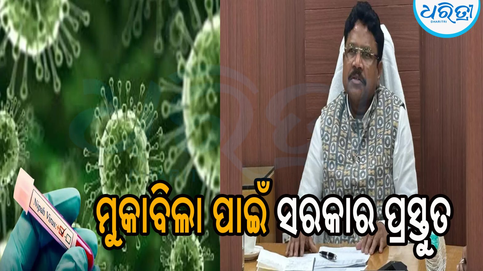 ଭୁବନେଶ୍ୱର,୧୬।୧: ନିପା ଭାଇରସ୍କୁ ନେଇ ସ୍ବାସ୍ଥ୍ୟମନ୍ତ୍ରୀ ମୁକେଶ ମହାଲିଙ୍ଗ ଏକ ବଡ଼ ସୂଚନା ଦେଇଛନ୍ତି। ଭାଇରସ୍କୁ ନେଇ କୌଣସି ଆତଙ୍କିତ ନ ହେବାକୁ ରାଜ୍ୟବାସୀଙ୍କୁ ସେ ଅପିଲ କରିଛନ୍ତି। ଶୁକ୍ରବାର ମନ୍ତ୍ରୀ ମହାଲିଙ୍ଗଙ୍କ ନେତୃତ୍ୱରେ ଏକ ଗୁରୁତ୍ୱପୂର୍ଣ୍ଣ ବୈଠକ ଅନୁଷ୍ଠିତ ହୋଇଥିଲା।